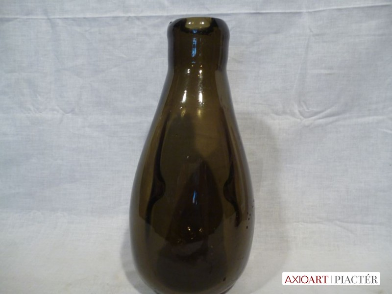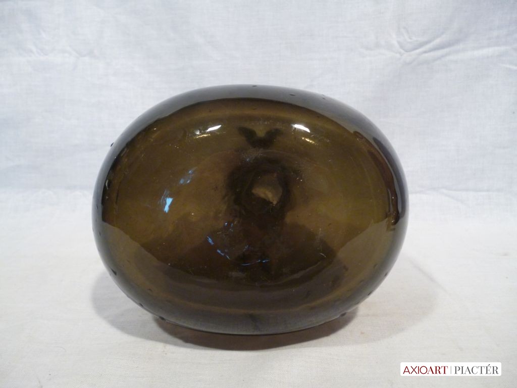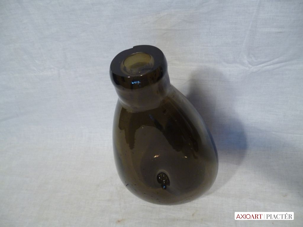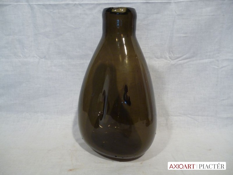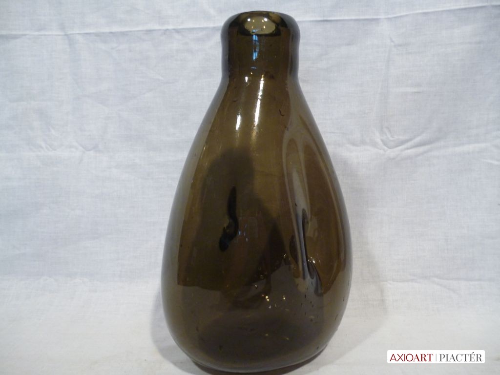 Szép állapotú régi művészi fújt üveg, füstüveg, extravastag falú design díszváza.
