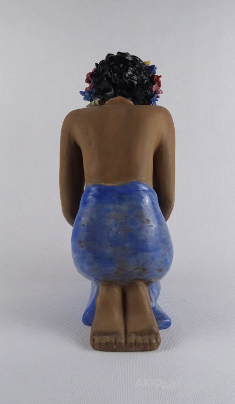 Régi nagyméretű art deco kerámia félakt tahiti női szobor 39 cm