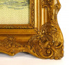 Szép állapotú, hatalmas aranyozott Blondel keretben, üveglap mögött található régi kézimunka, gobelin. Tájkép, középpontban nagy tölgyfa, mellette ház, házak, templom.