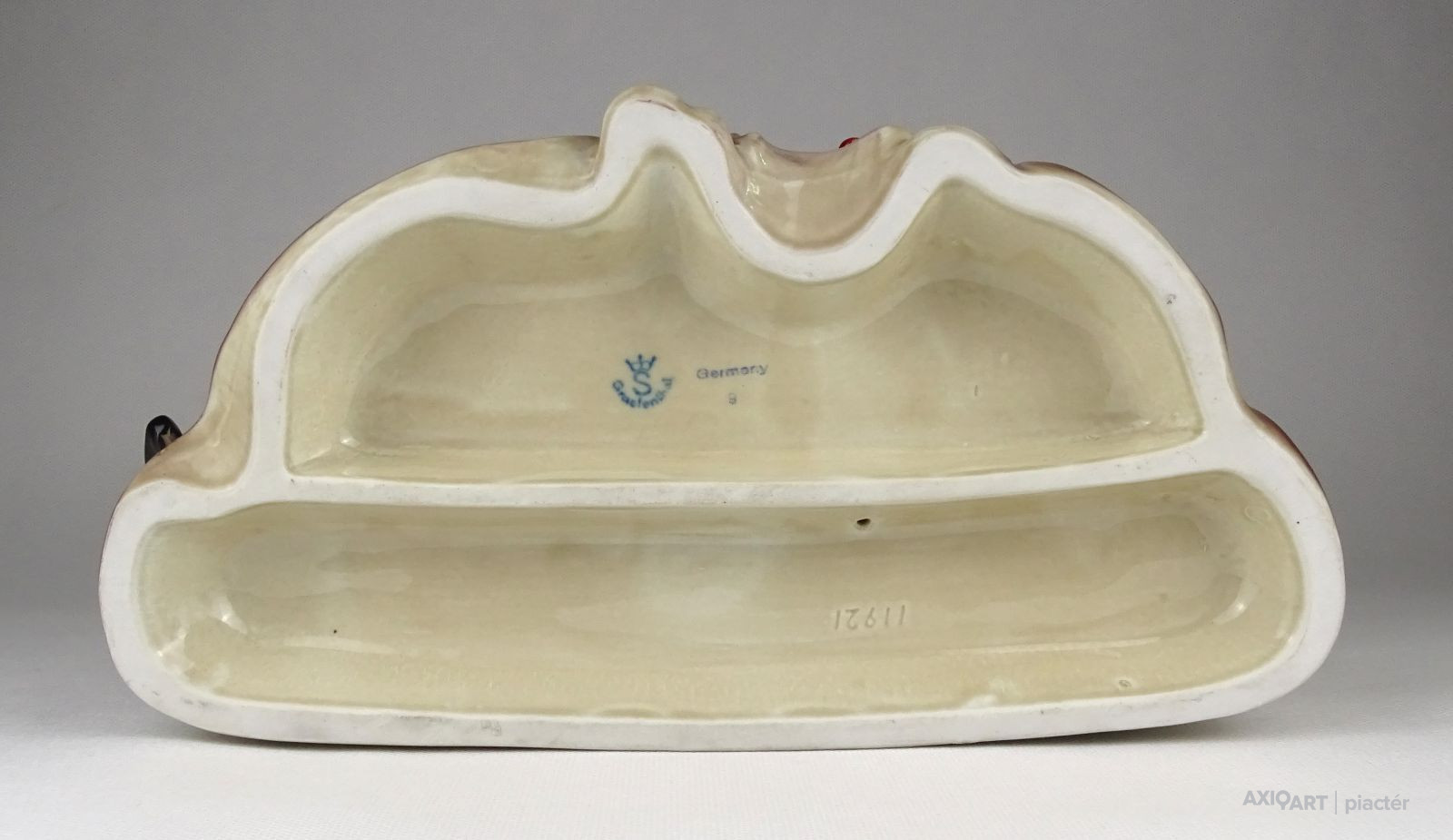[0S004/X046] Hibátlan állapotú, kisméretű, jelzett kerámia nő figura, díszváza. Jelzés: KISS ROÓZ Magasság: 14.5 cm Szélesség: 7 cm Súly: 0.298 kg Kiss Roóz Ilona keramikus Születési hely: Szatmárnémeti [Satu Mare, RO] Születési dátum: 1920 Kiállítások az adatbázisban:  Kiss Roóz Ilona életműkiállítása Mesterei: Orbán Antal, Ohmann Béla. 1939-43: Iparművészeti Iskola, mesterei: Orbán Antal, Ohmann Béla. 1956, 1962: Munkácsy-díj; 1980: érdemes művész; 1984: SZOT-díj; 1994: MSZOSZ díja; 1995: Magyar Köztársasági Érdemrend Középkeresztje. A magyar kerámia Kovács Margit által teremtett naiv-népies irányzatának jeles művelője. Edényeit, kisplasztikáit, ill. murális alkotásait vidám színvilág és kedves humor jellemzi. 1948 és 1952 között tanított az Iparművészeti Főiskolán, azóta szabadfoglalkozású. Egyéni kiállítások 1966 • Csók Galéria, Budapest 1971 • Csók Galéria, Budapest 1980 • Budavári Ipaművészeti Bolt, Budapest 1984 • Petőfi Művelődési Ház, Tiszaluc 1989 • Kispréposti Palota, Eger (állandó kiállítás) 1992 • Bécs 1995 • Minigaléria, Miskolc 1996 • Petőfi Művelődési Ház, Tiszaluc 1997 • Derkovits Művelődési Központ, Tiszaújváros. Válogatott csoportos kiállítások 1947 • Karácsonyi kiállítás, Budapest • Fővárosi Művelődési Központ 1952 • Iparművészeti kiállítás, Ernst Múzeum, Budapest 1956 • Iparművészeti kiállítás, Iparművészeti Múzeum, Budapest 1958 • Magyar kerámia kiállítás, Vallauris 1959 • Magyar képzőművésznők kiállítása, Ernst Múzeum, Budapest 1959 • IV. Országos Iparművészeti Kiállítás, Műcsarnok, Budapest 1963 • Modern magyar kerámia, Royal Festival Hall, London 1965 • Országos Iparművészeti Kiállítás, Műcsarnok, Budapest 1968, 1970 • I., II. Országos Kerámia Biennálé, Pécs 1973 • Magyar kerámia, Ankara, Isztambul 1975 • Tárgy és alkotója, Iparművészeti Múzeum, Budapest 1982 • Magyar kézműves kerámia, Siklós 1995 • XX. századi magyar keramikusok, Iparművészeti Múzeum, Budapest • Az agyag mesterei, Vigadó Galéria, Budapest 1998 • Őszi Kerámia Kiállítás, Olaf Palme Ház, Budapest Művek közgyűjteményekben Köztéri művei kerámia dombormű (1958, Pereces, bölcsőde) kerámia napóra (1959, Székesfehérvár, Béke téri iskola) csempeburkolat (1961, Szeged, rendelőintézet) falikép (kerámia, 1962, Sopron, Gyermekszanatórium) kerámia falikép (1966, Békéscsaba, bölcsőde) Irodalom GÁL J.: ~ 77 éves. Beszélgetés a művésszel, Magyar Iparművészet, 1997/4. KESZTHELYI K.-LACZKÓ I.: A magyar kerámiaművészet I., Alkotók, adatok 1945-1998, Budapest, 1999. Vadas József + MAOE Forrás: artportal.hu