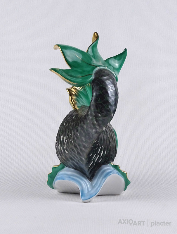 [1U230/Z040] 25% ÁRENGEDMÉNY MINDEN TERMÉKÜNKRE Dec. 14-ig Régi nagyméretű szép állapotú, kínai mintás, jelzett Herendi porcelán hal, aranyhal talapzaton. Alján kék koronás Herendi jelzés: HEREND HUNGARY HANDPAINTED Formaszám: 5250 Mélynyomással: HEREND Magasság: 14.5 cm Szélesség: 7 cm Hosszúság: 12 cm Súly: 0.27 kg