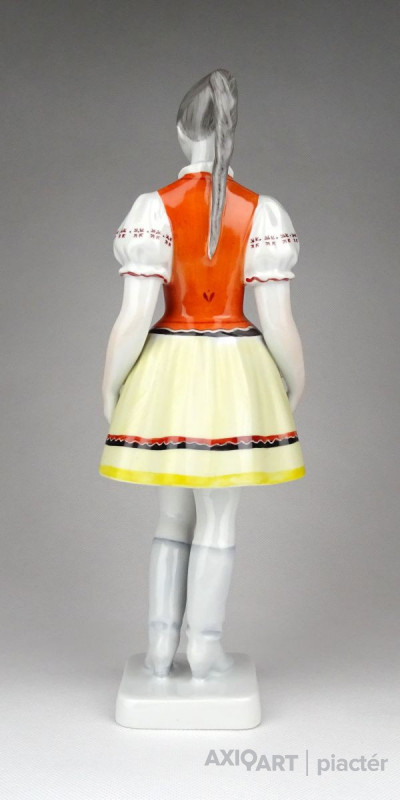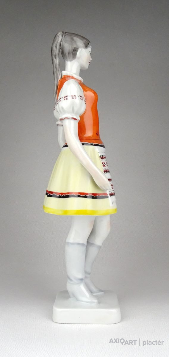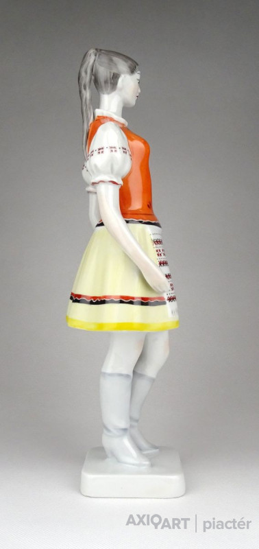 [1D785/X208] Hibátlan állapotú, nagy méretű, Hollóházi porcelán menyecske szobor népviseletben. Kézi festéssel díszített. Alján zöld márkajelzés: HOLLÓHÁZA HUNGARY 1831 KÉZZEL FESTETT Magasság: 30 cm Szélesség: 10 cm Súly: 0.55 kg