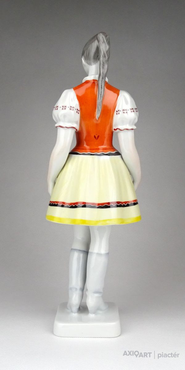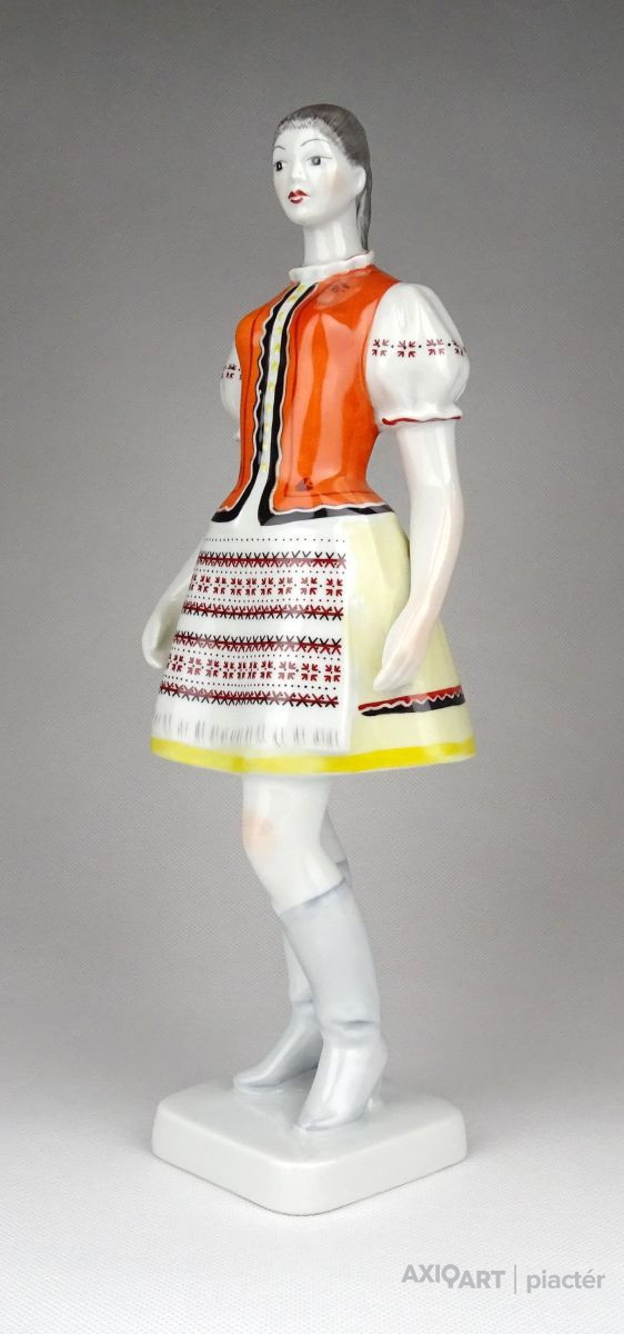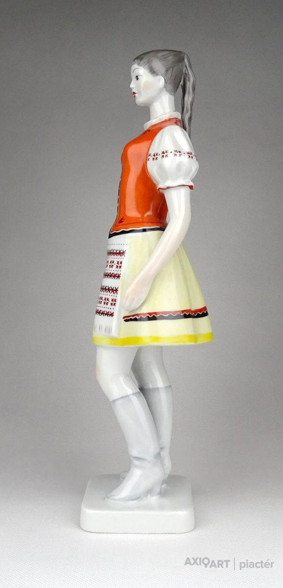 Hibátlan állapotú, nagy méretű, Hollóházi porcelán menyecske szobor népviseletben. Kézi festéssel díszített.