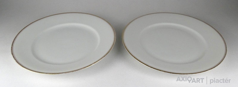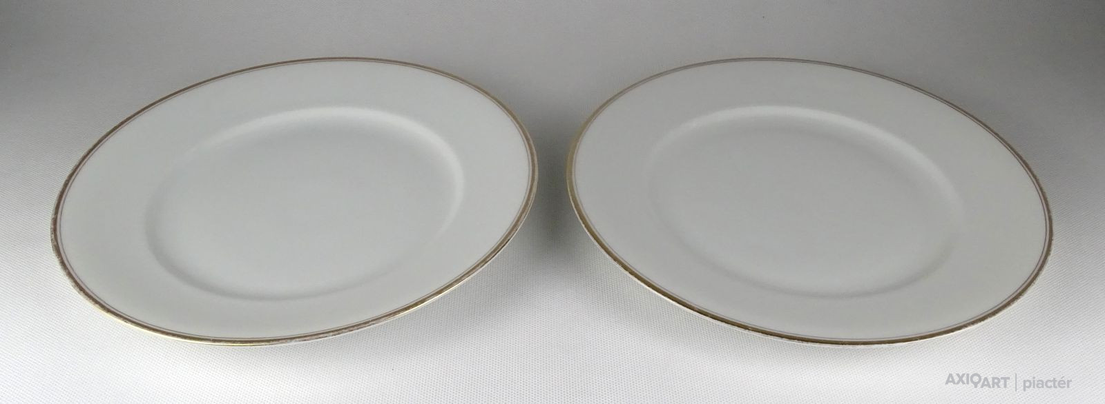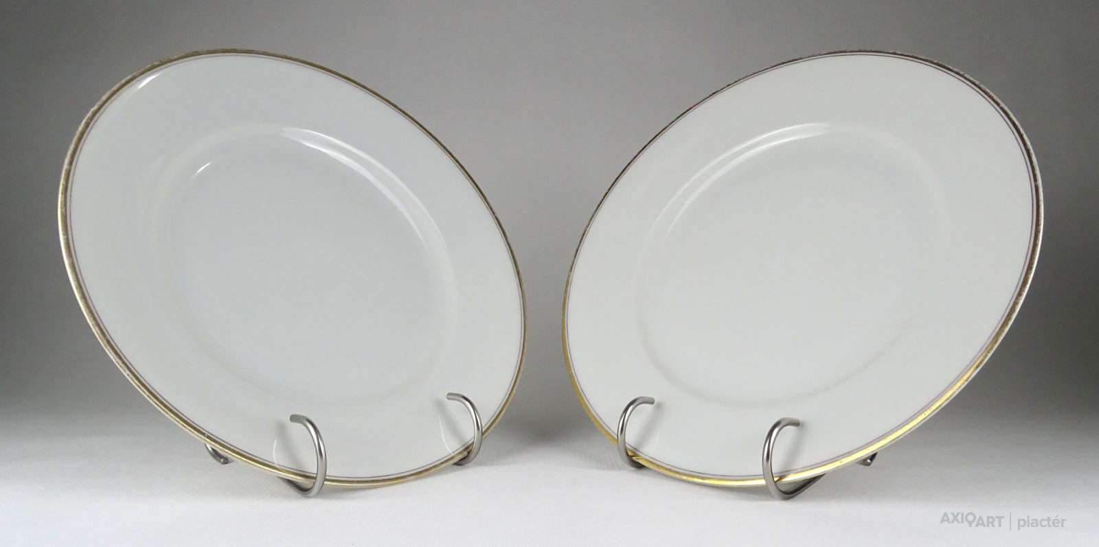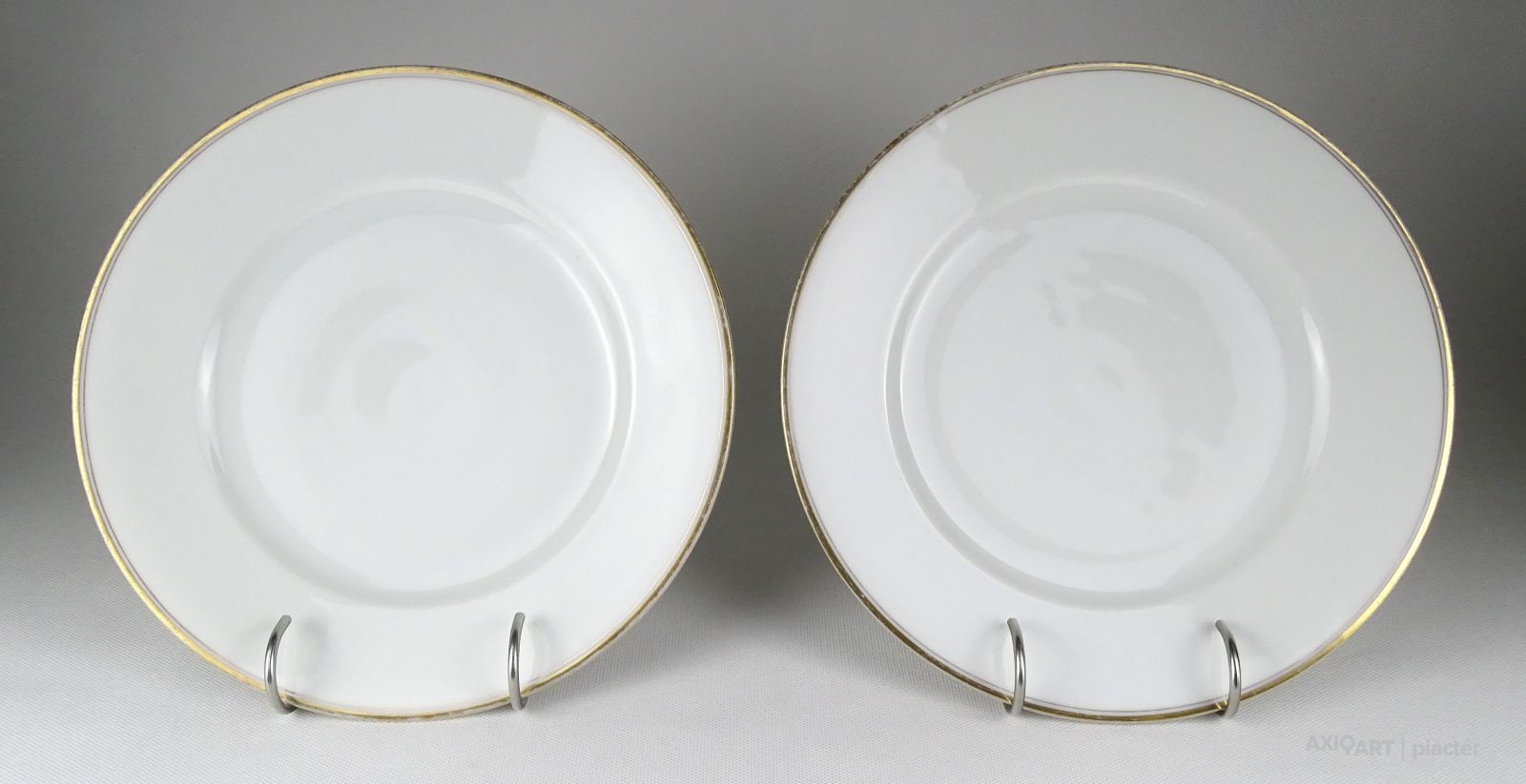 Régi jelzett nagy méretű porcelán tányér pár. Pereme aranyozott.