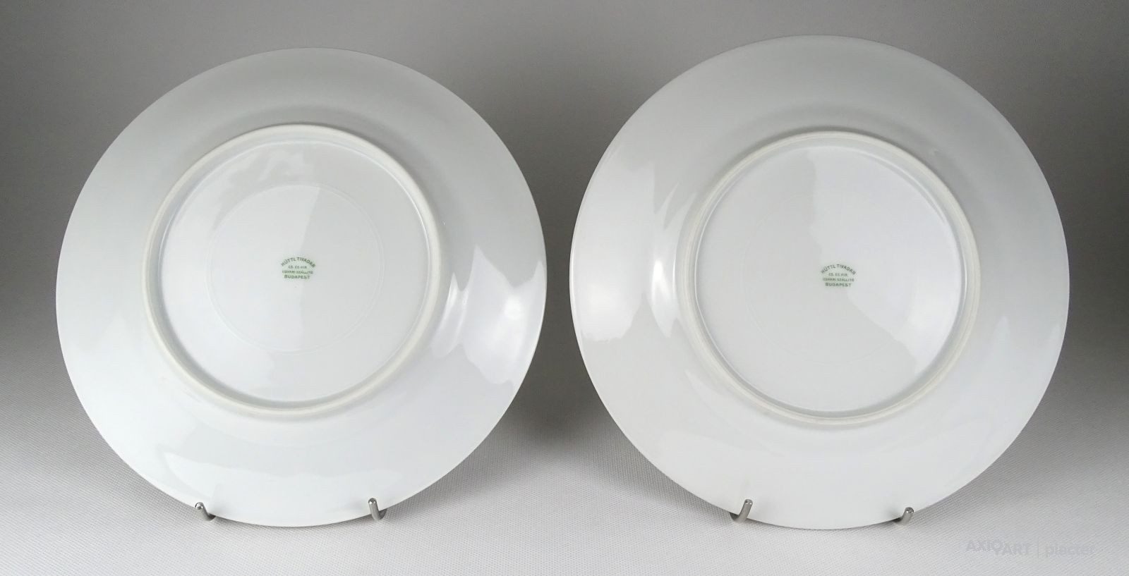 Régi nagyméretű Hüttl Tivadar porcelán tányér pár 25.5 cm