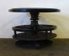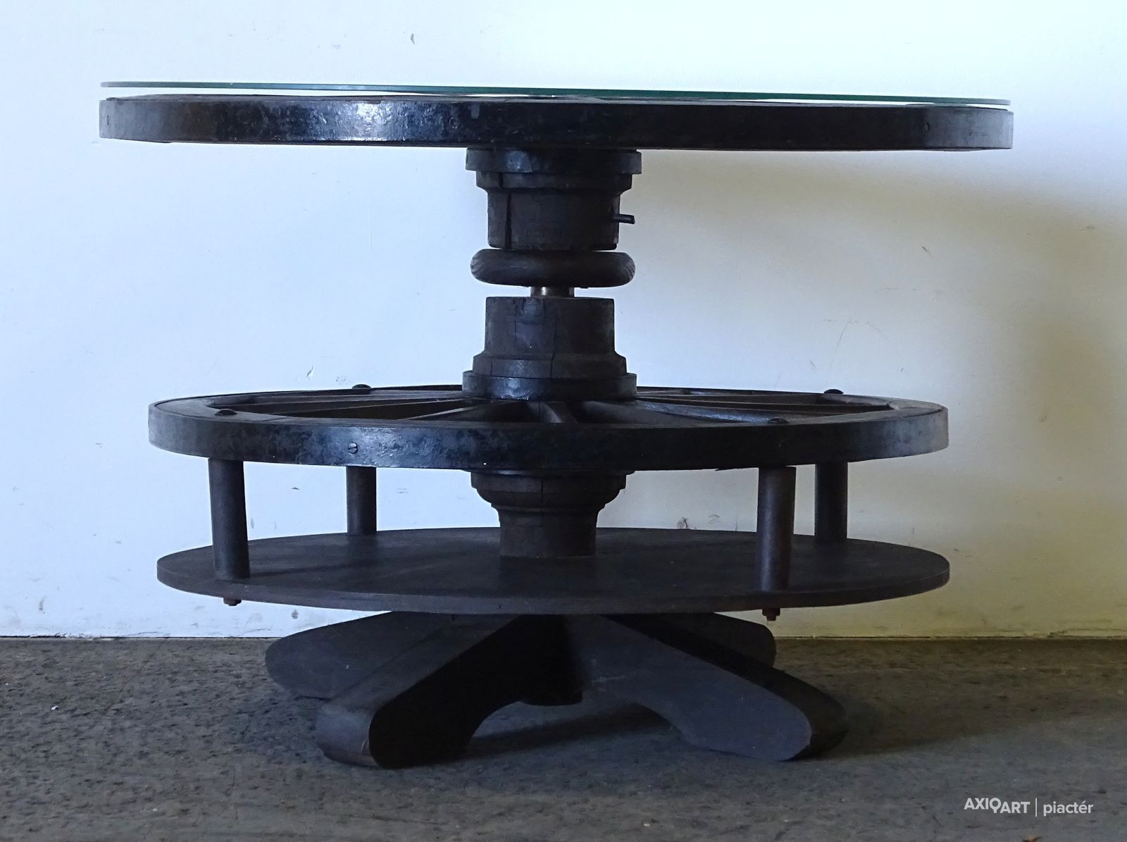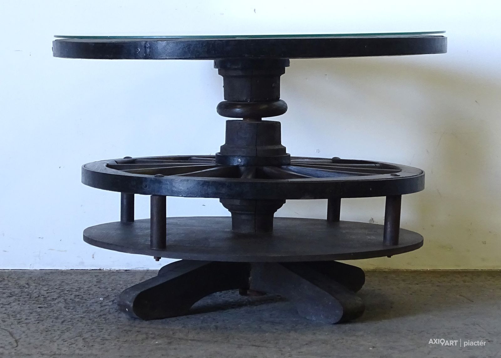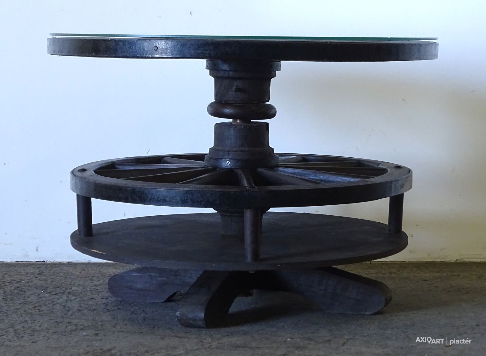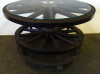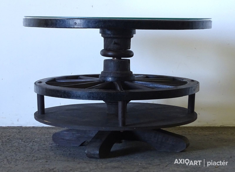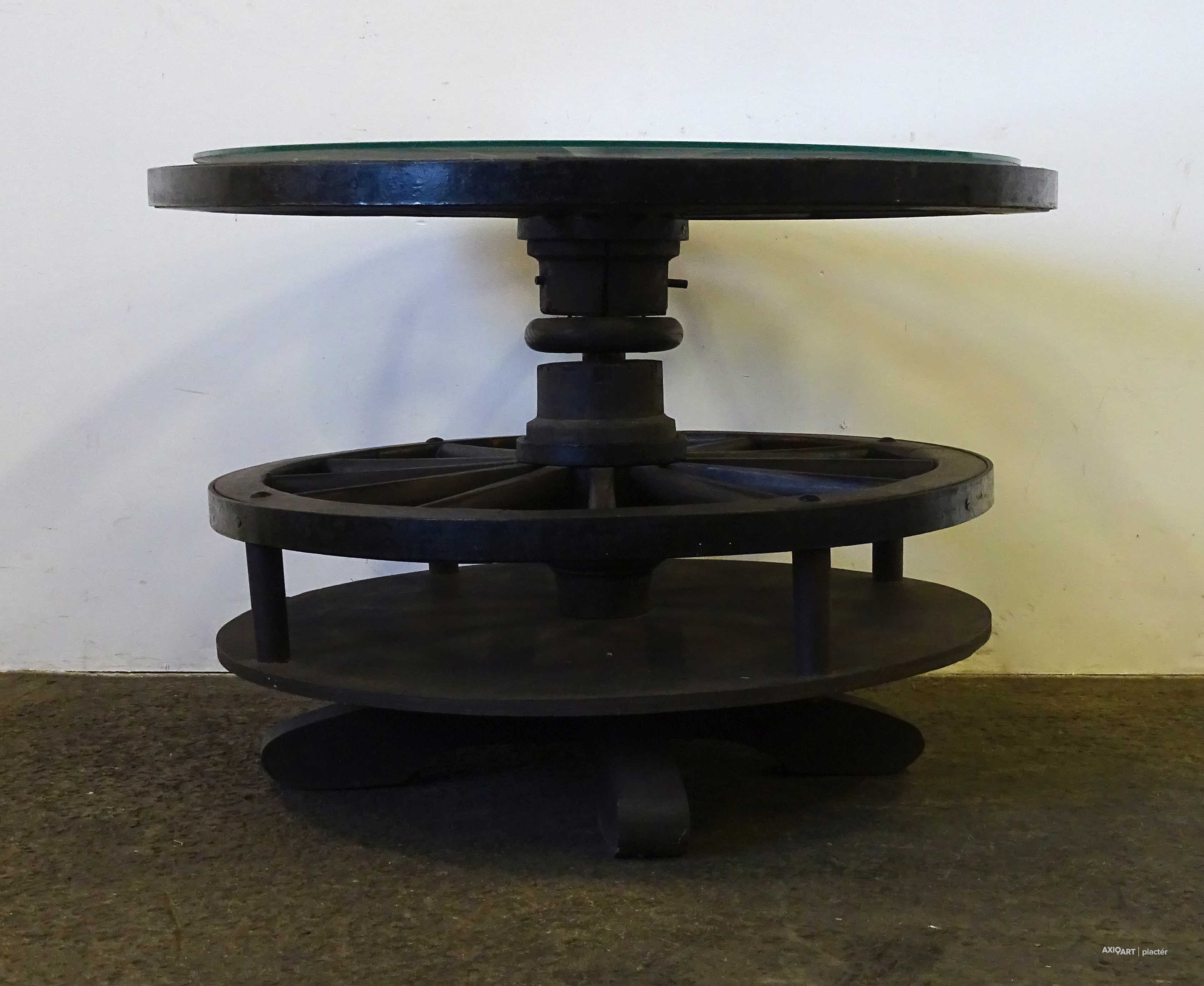 Régi nagyméretű kocsikerék forgóasztal szalonasztal 68.5 x 98 cm