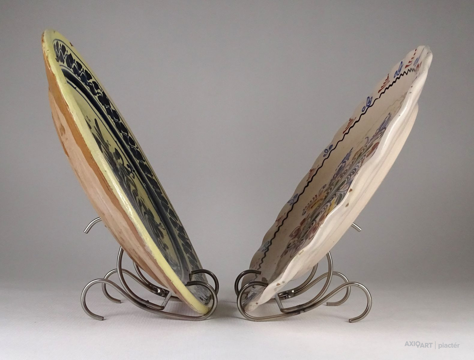 [1Q034/X186] Régi szép állapotú nagy méretű kerámia tál, tányér, fali tányér. Akasztási lehetőséggel rendelkeznek. - 1 darab korondi falitál (30.5 cm) - 1 darab hódmezővásárhelyi falitál (30 cm) Súly: 1.985 kg