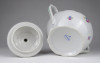[1P115/X225/2] Hibátlan állapotú, jelzett, nagy méretű, virágmintával díszített Meisseni porcelán cukortartó, cukorkínáló bonbonier. Alján kék csillagos jelzés: MEISSEN Magasság: 12 cm Szélesség: 11.7 cm Hosszúság: 16.7 cm Súly: 0.34 kg