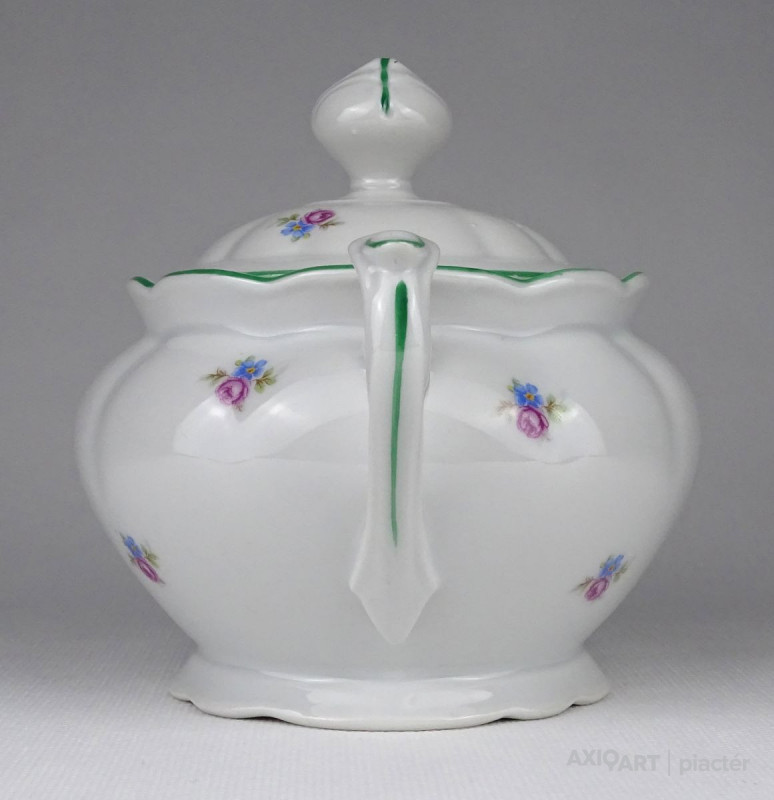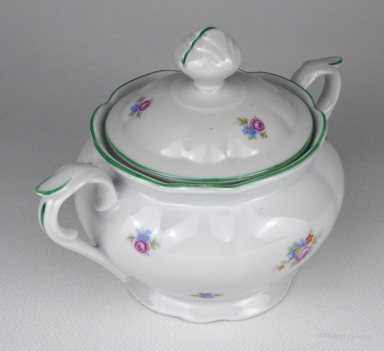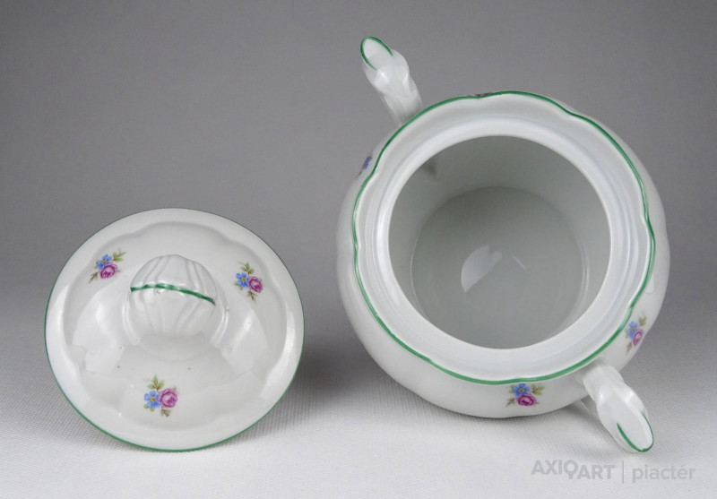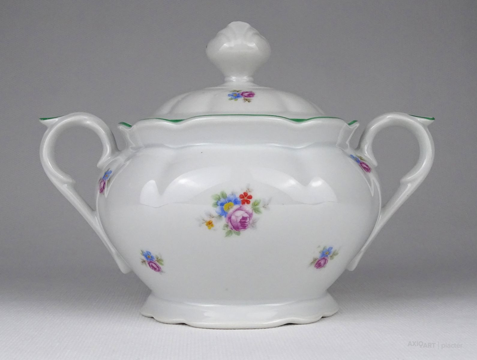 Hibátlan állapotú, jelzett, nagy méretű, virágmintával díszített Meisseni porcelán cukortartó, cukorkínáló bonbonier.