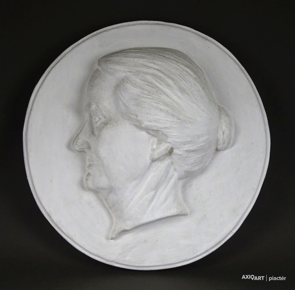 Régi nagyméretű plasztikus női portré gipsz relief 36 cm