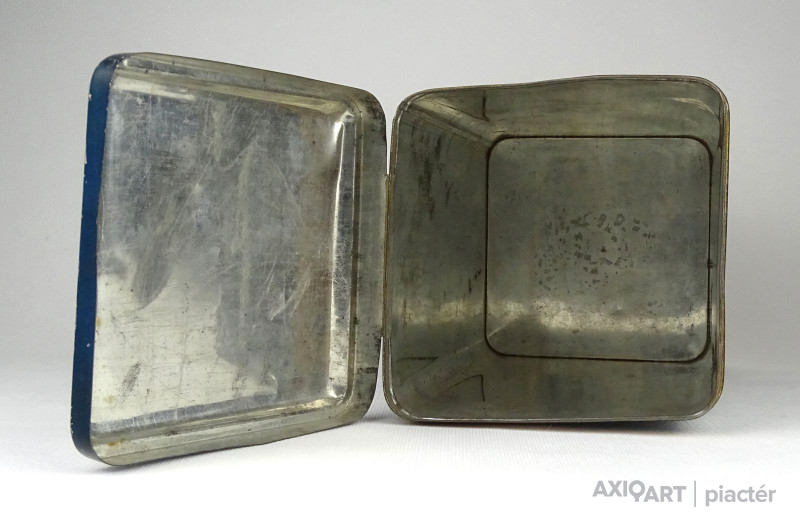Régi nagyméretű teás pléhdoboz teafüves doboz 23.5 cm