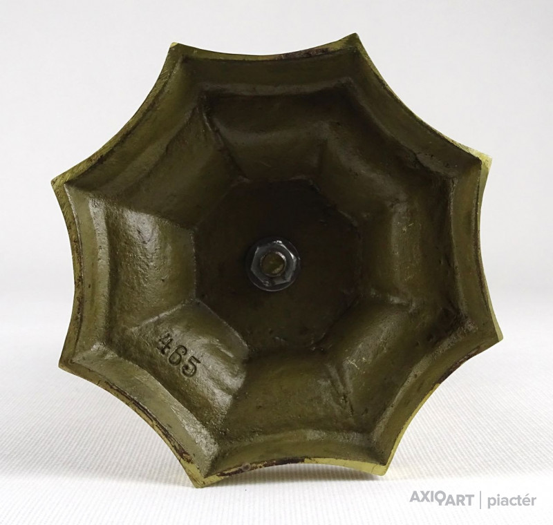 [1P686/Z010] Hatalmas méretű hibátlan állapotú sárgaréz feszület, rajta keresztre feszített Jézus. Gyönyörű nyolc kazettás historizáló gótikus talapzaton áll. Liturgikus, vallási kegytárgy. Alján formaszám: 465 Magasság: 49.5 cm Szélesség: 13.3 cm Súly: 2.875 kg