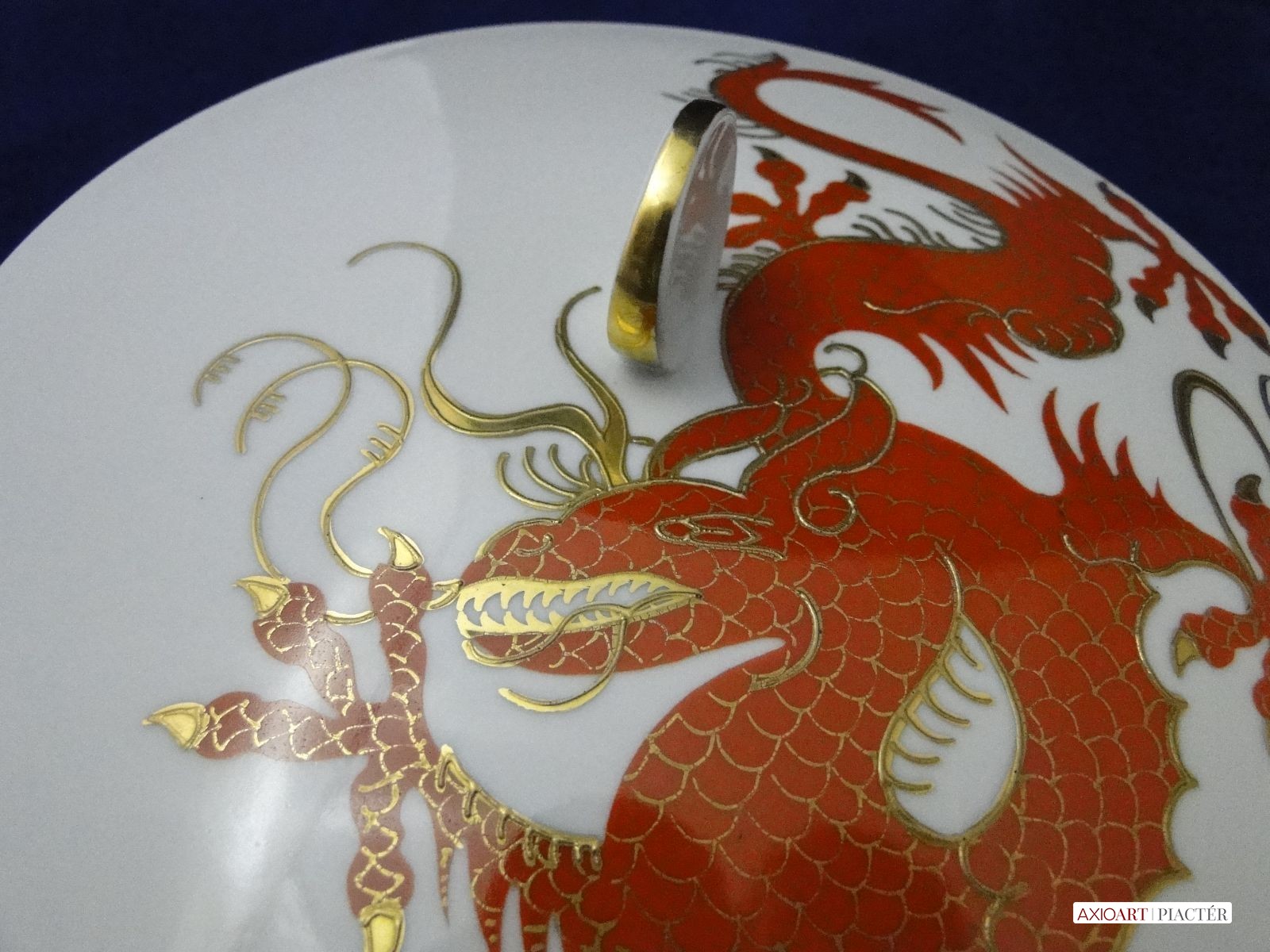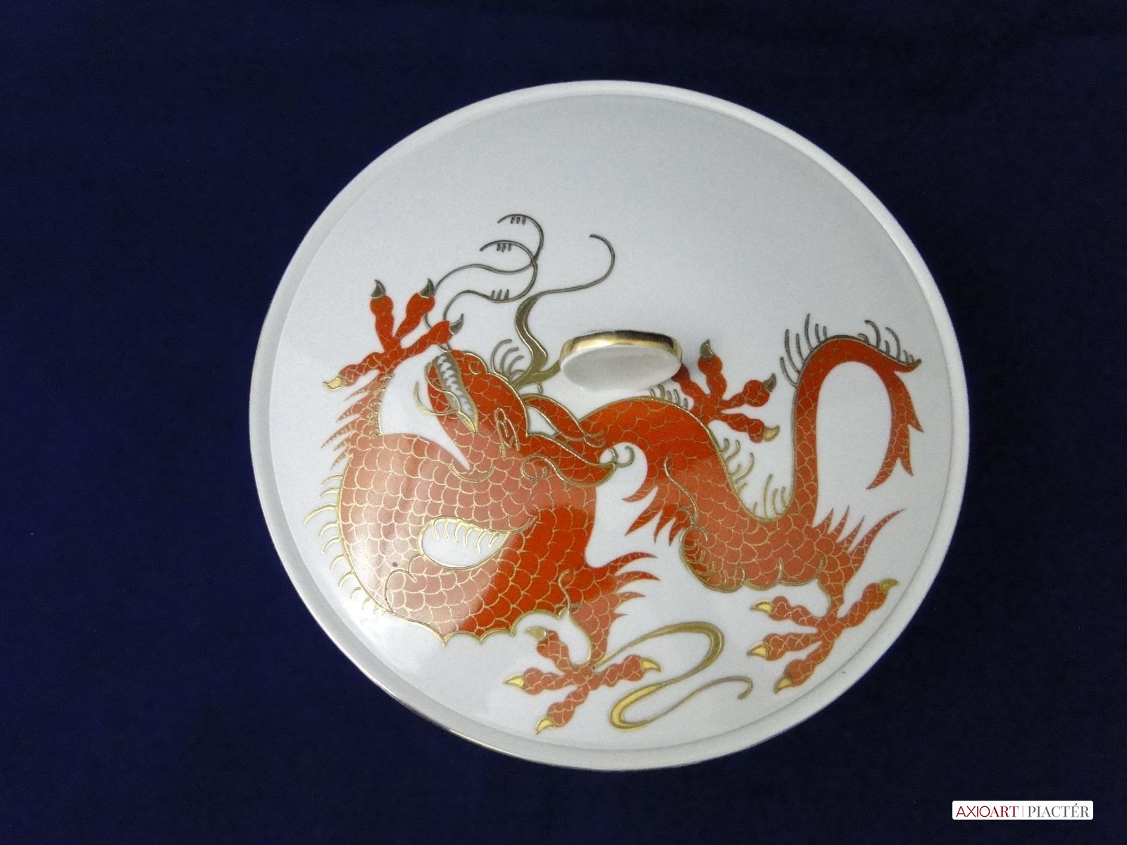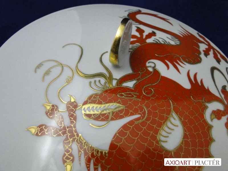 Régi extra nagyméretű hibátlan állapotú gyönyörűen, arannyal gazdagon díszített sárkányos porcelán bonbonier.