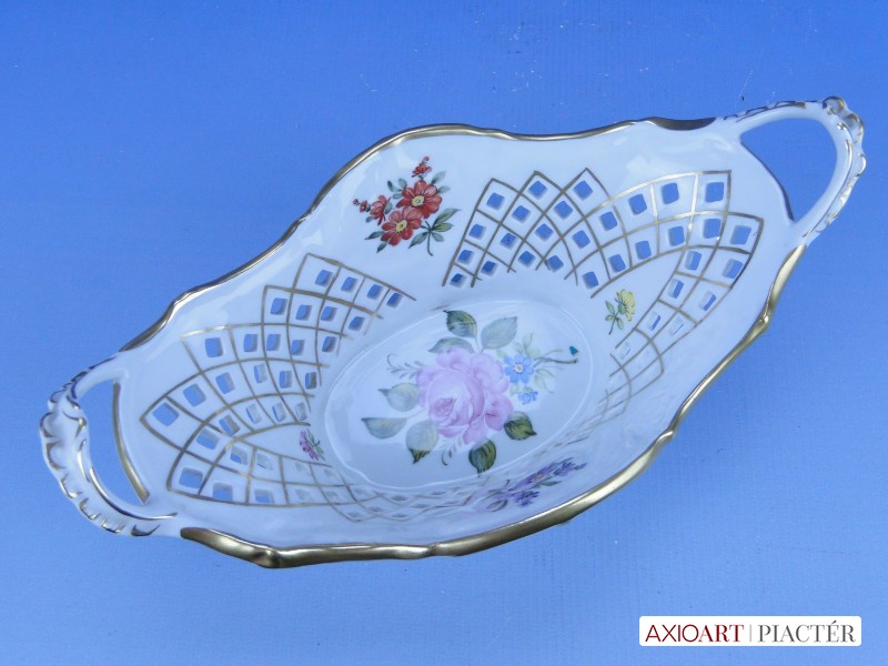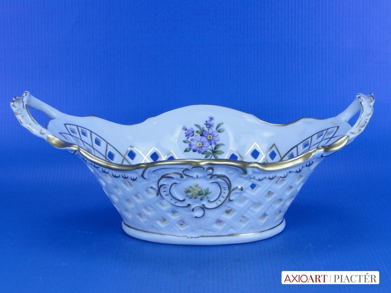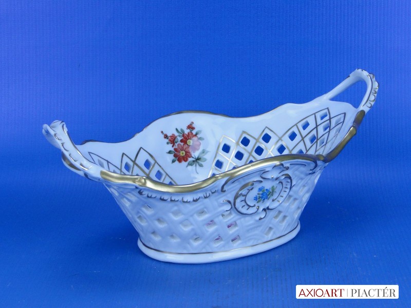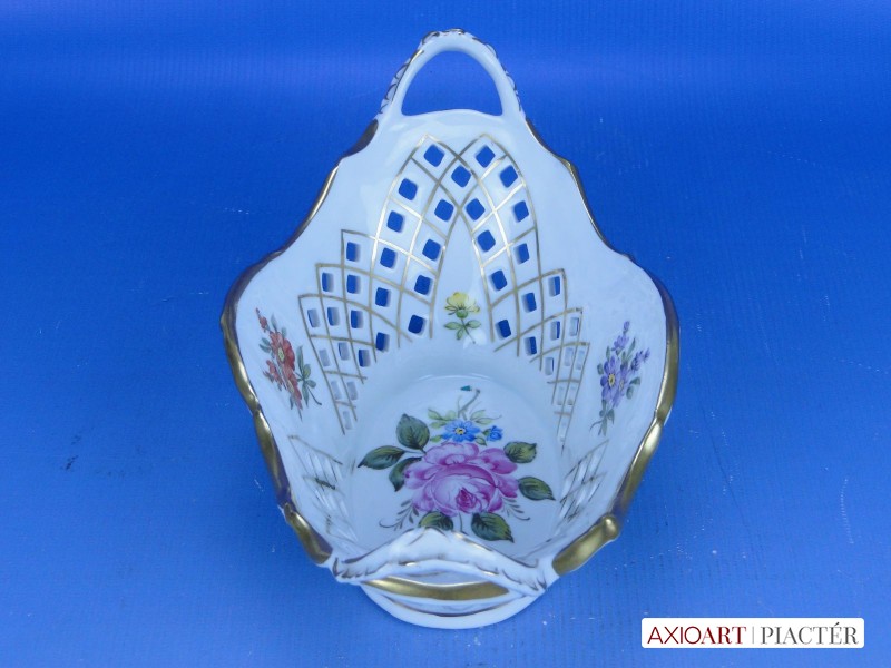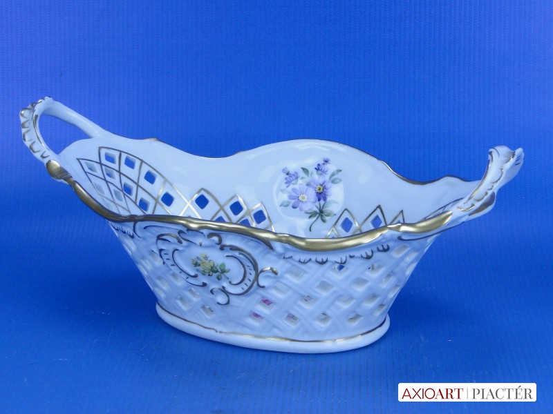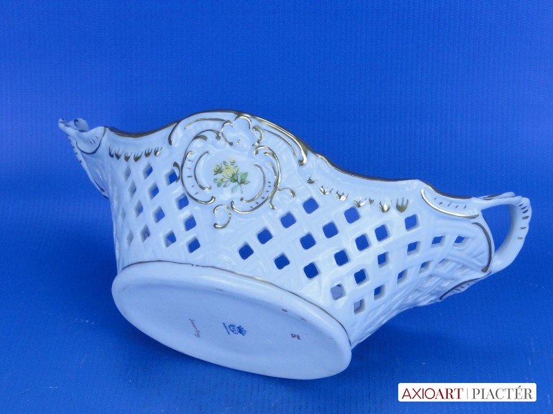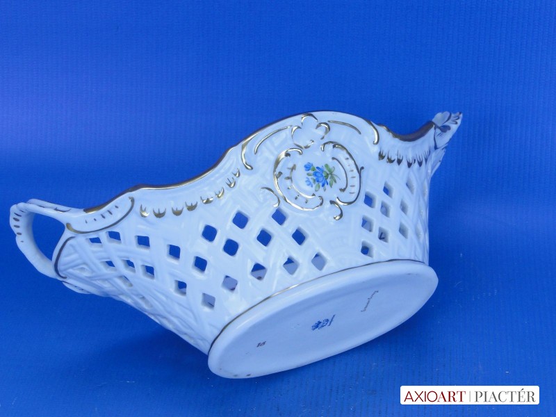 Hibátlan állapotú régi, gazdagon aranyozott, áttört német porcelán kosár, barokkos fülekkel.
