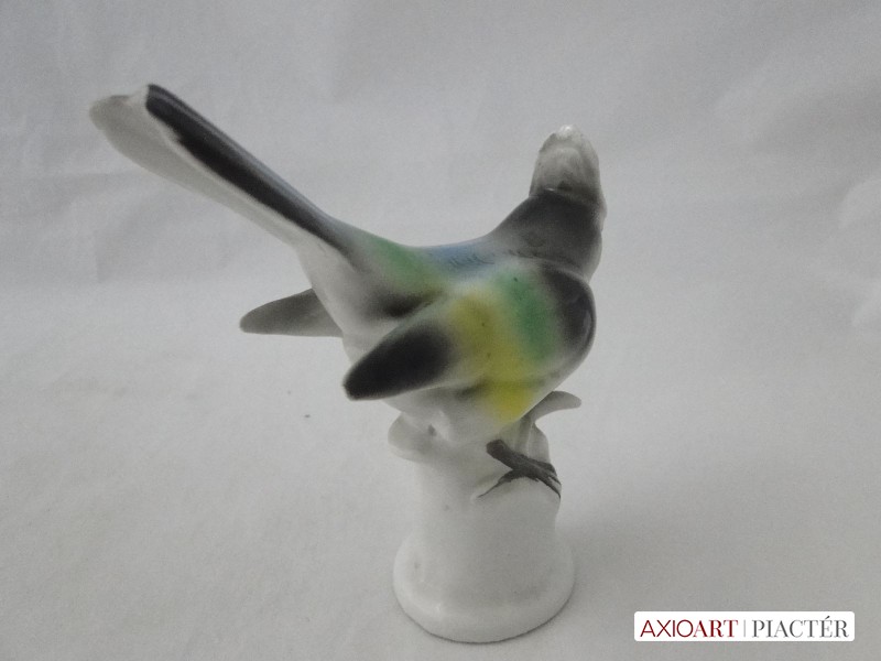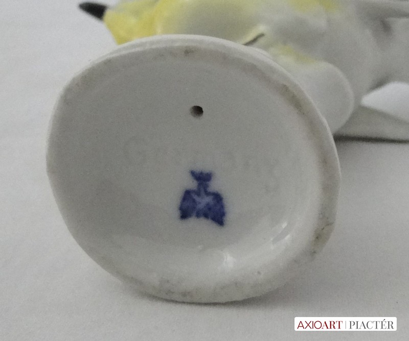 Porcelán kismadár, alján GERMANY felirattal, mellette sasos, koronás kék jelzés.
