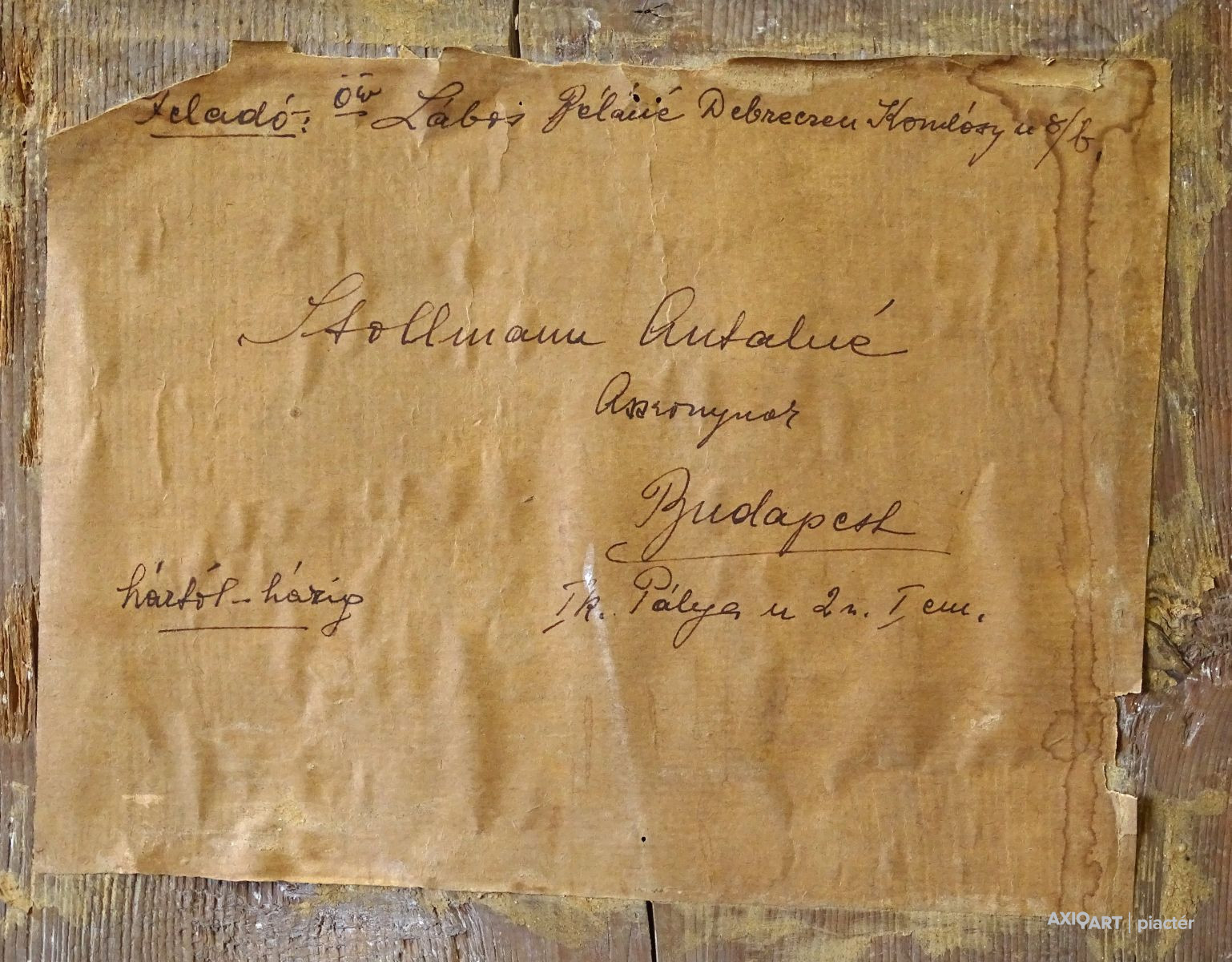 Hátoldalán korabeli "háztól-házig" szállítmányozási címke található, lásd fotó.