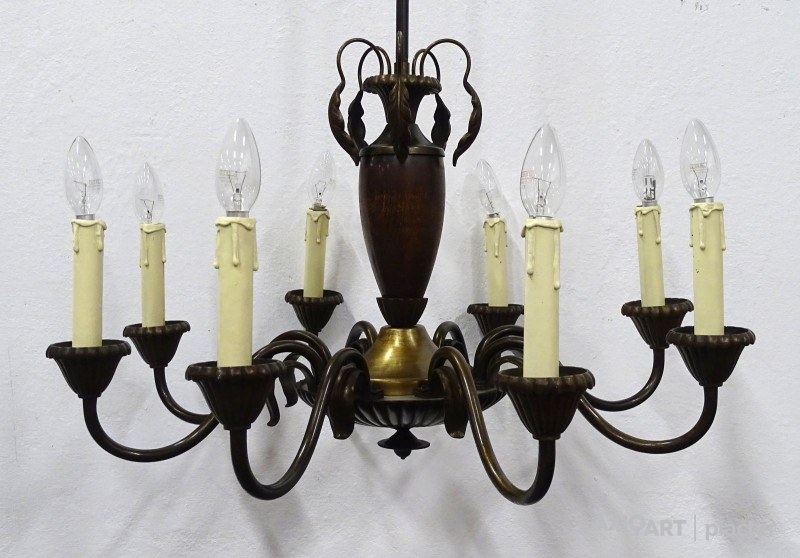 Régi nyolcágú bronzírozott flamand formájú csillár 140 x 70 cm