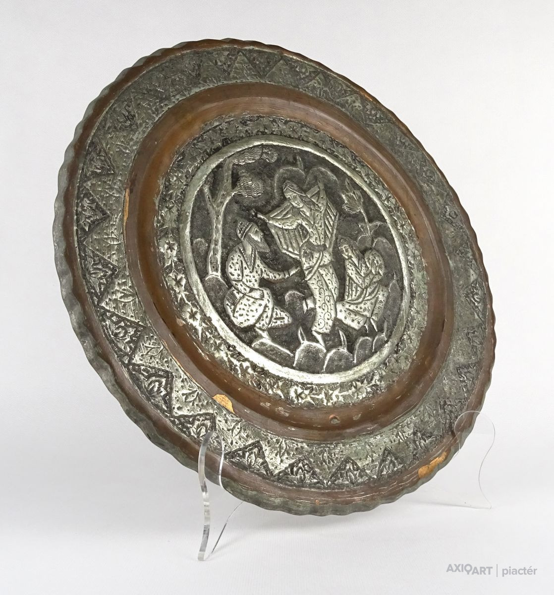 Régi ónozott orientalista réz fali tál dísztál 34.5 cm