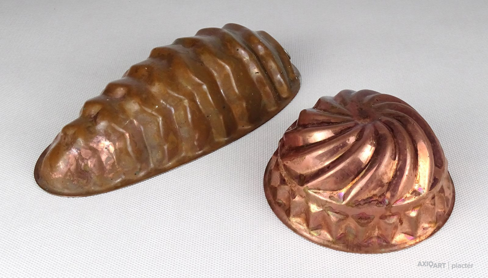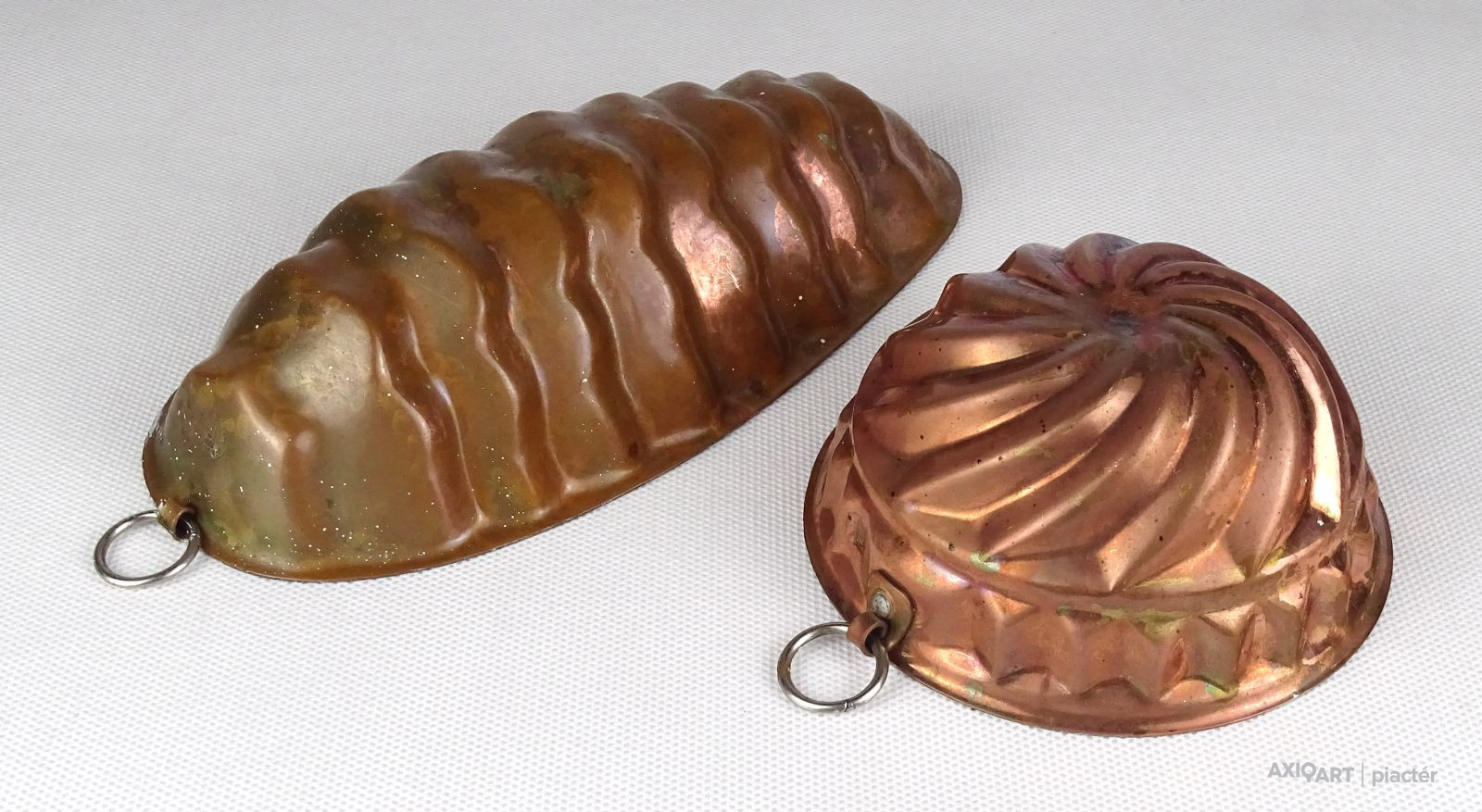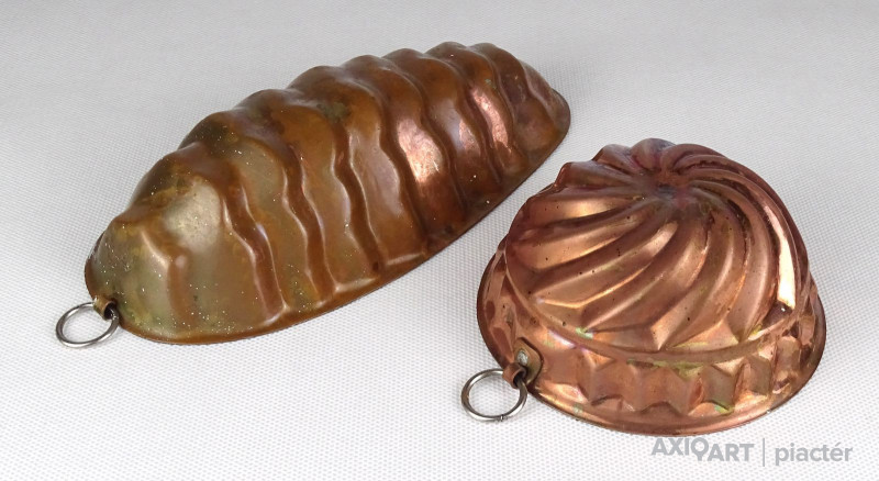 Régi ónozott vörösréz sütemény készítő forma sütő forma pár