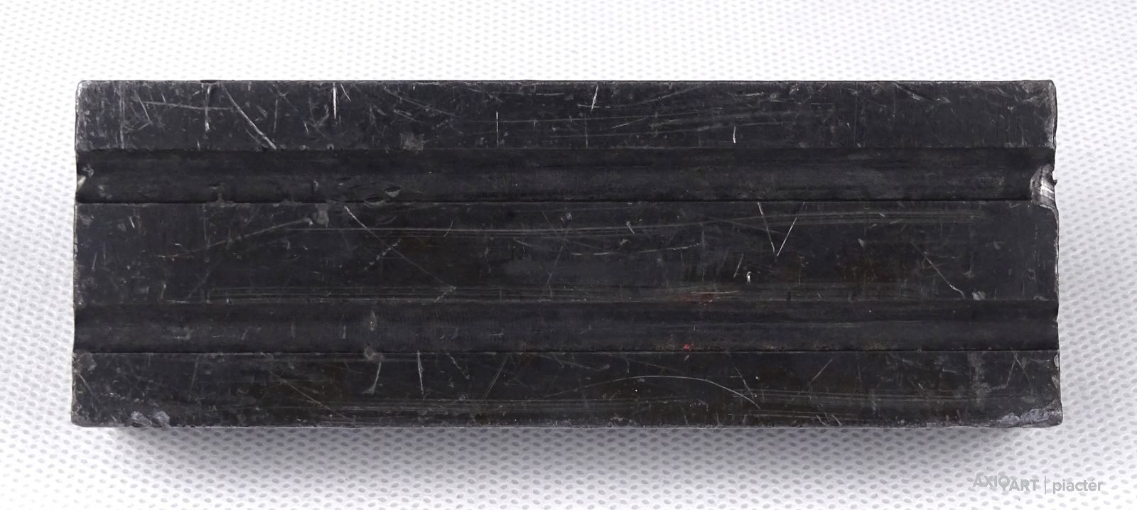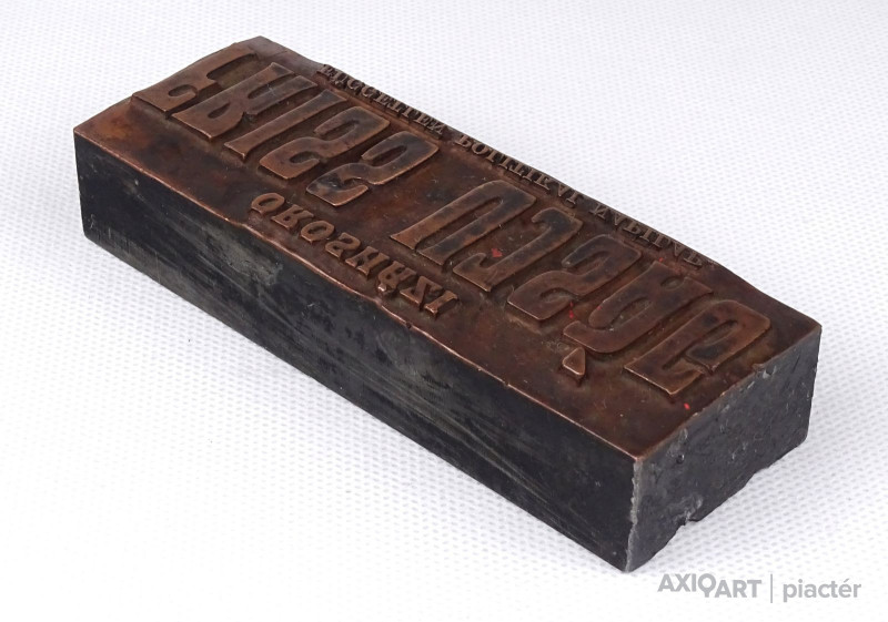 Régi ólomtömb, bronz nyomófelületű klisé. Az újság címlapja, az újság neve nyomtatódott vele.