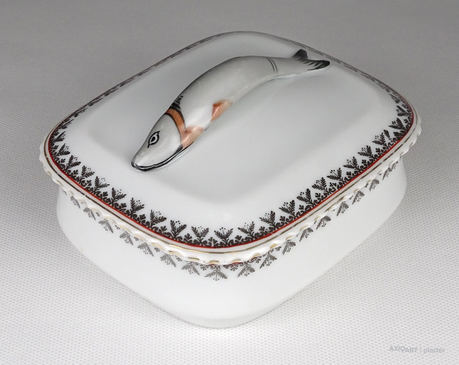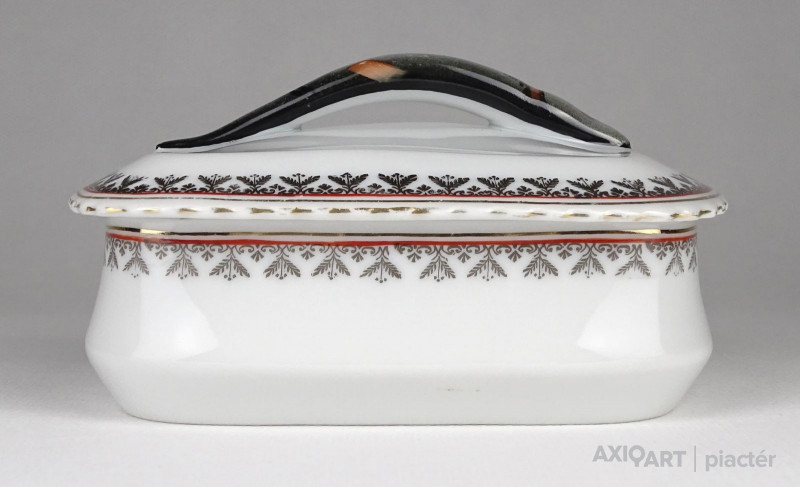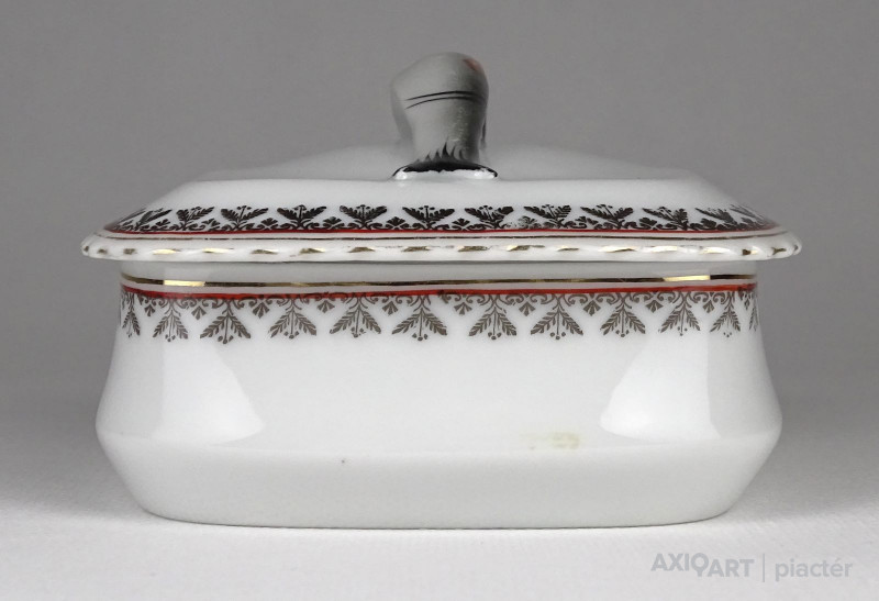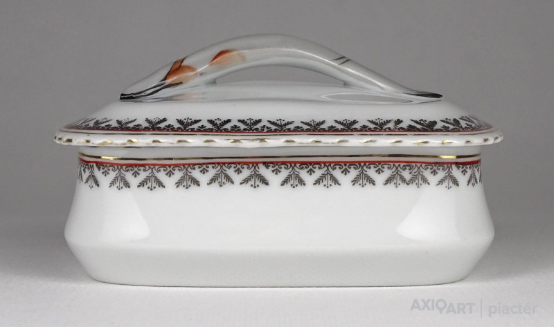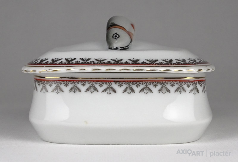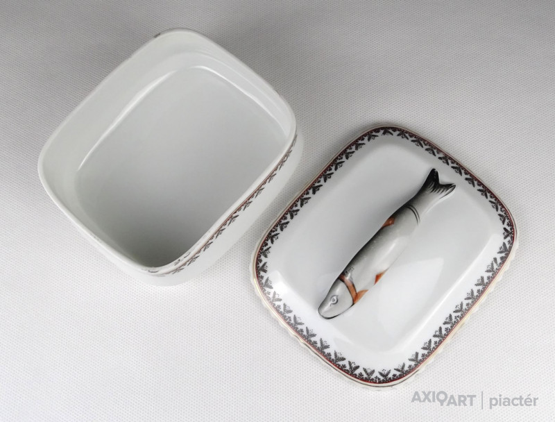Régi jelzett osztrák porcelán tál, fedővel. Kis méretű szardíniás kínáló tál.