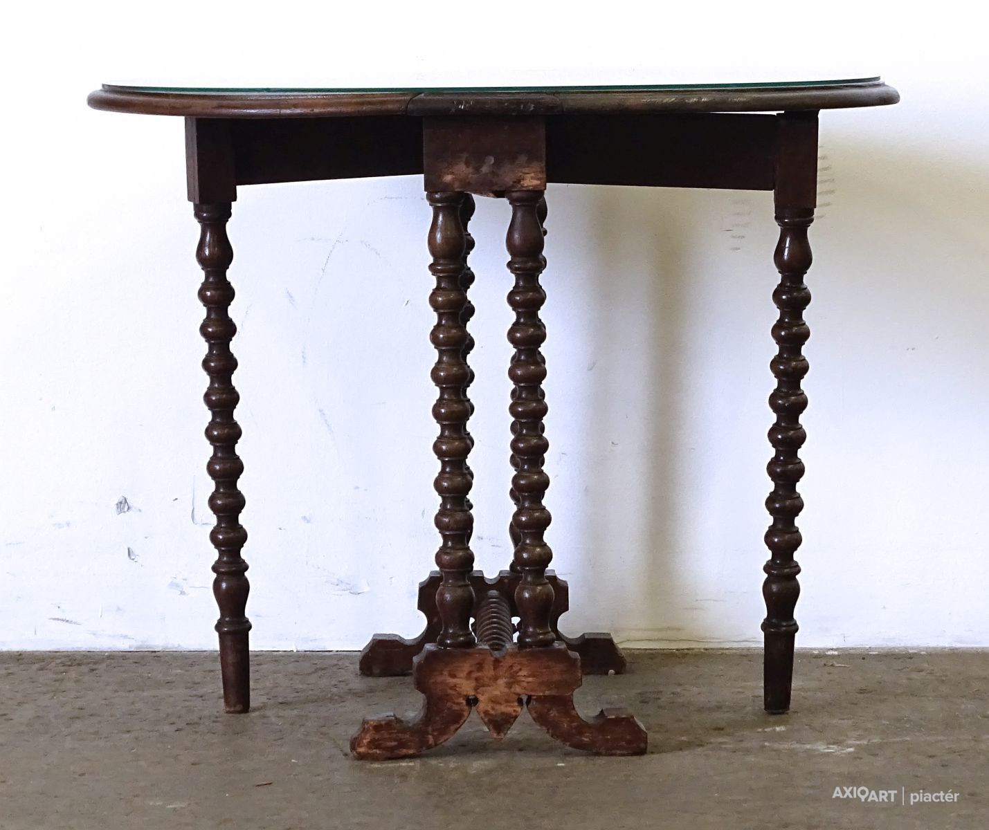 Régi összecsukható ovális alakú kisméretű különleges asztal üveglappal