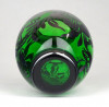 [1E106/UZ-K] Régi, ezüsttel futtatott, sötétzöld színű üveg váza az 1900-as évek első feléből. Oldalán körben vastagon ezüstözött virágdíszítés látható. Magasság: 10 cm Szélesség: 6.5 cm Súly: 0.105 kg