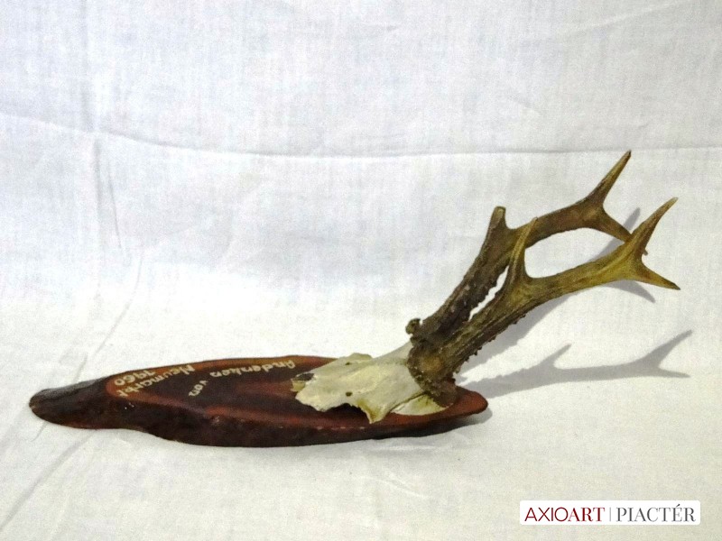 Régi őz trófea , agancs fa talpon 1960