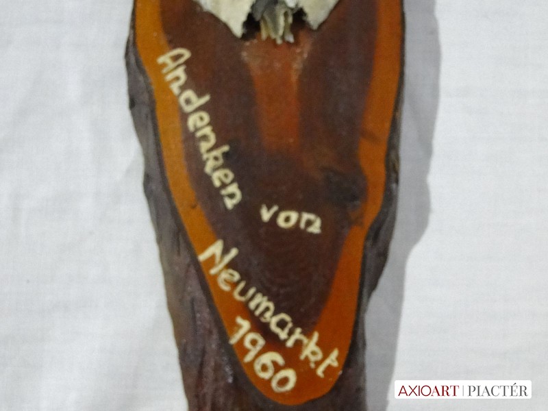 [0440/X081] Régi őz trófea , agancs fotón látható állapotban, fa talpon, falra akasztható. Talapzaton felirat: Andenkem von Neumarkt 1960. Magasság: 17 cm Szélesség: 9.5 cm Hosszúság: 42 cm Súly: 0.358 kg Maga az agancs hossza: 19 cm.