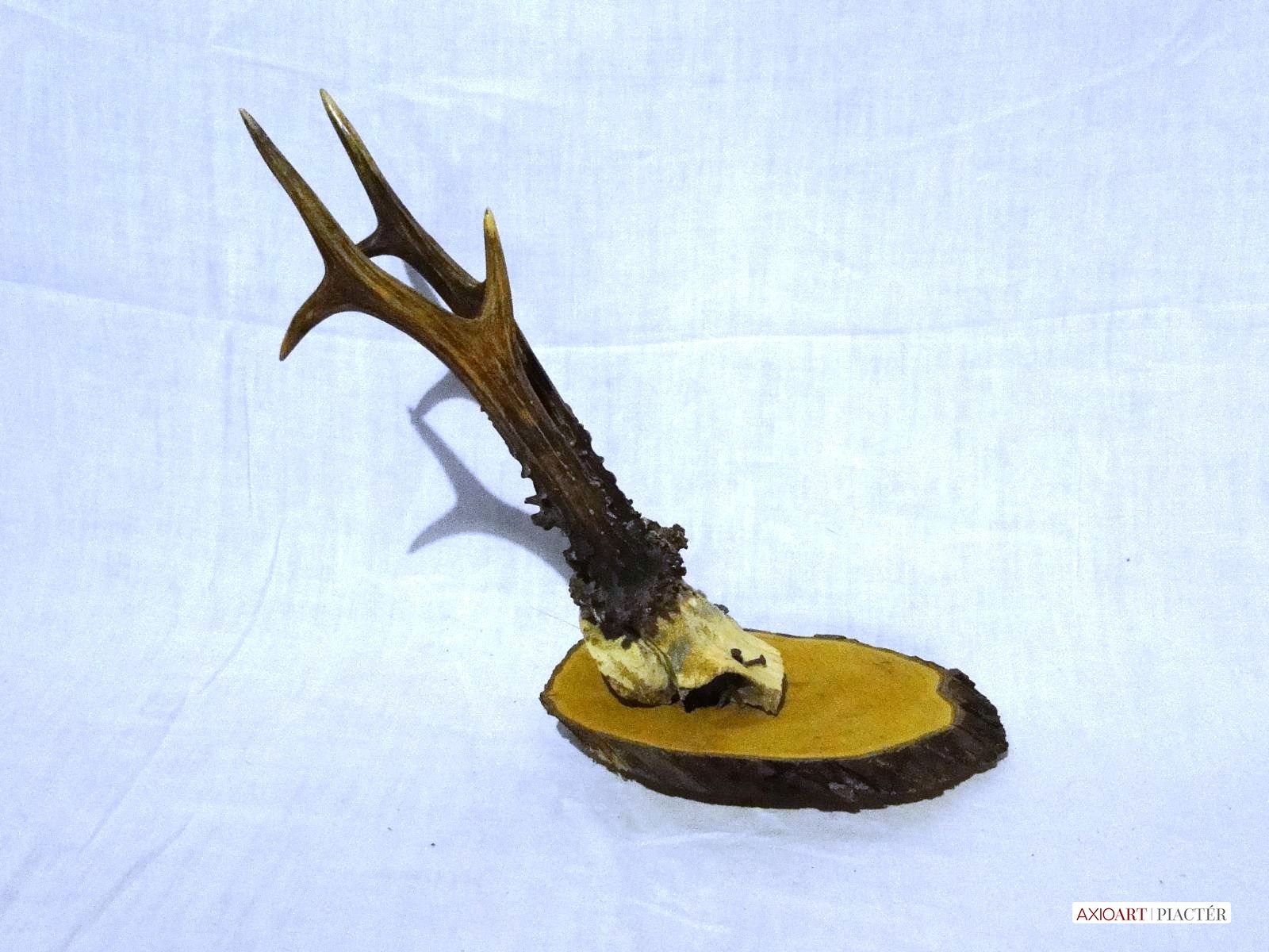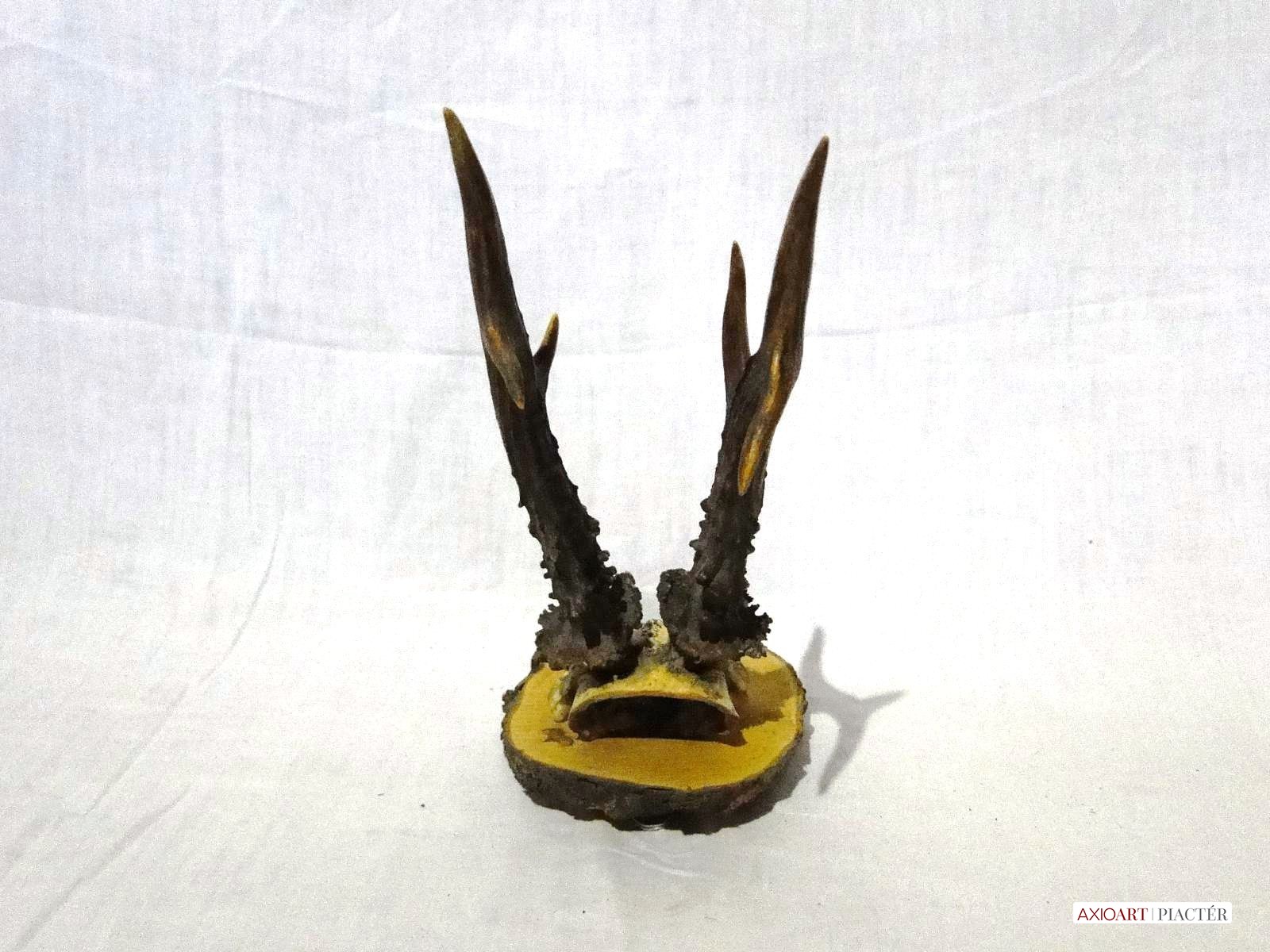 Régi őz trófea , agancs fotón látható állapotban, fa talpon, falra akasztható.