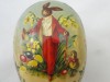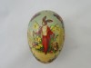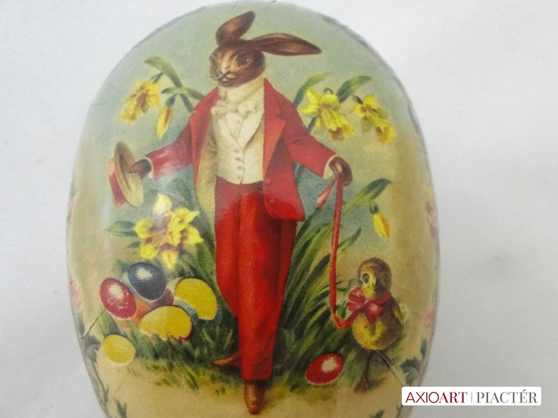 [6113/X018] Régi német papírmasé nyuszi és csibe mintás tojás, csokitartó, drazsé tartó kisdoboz. Magasság: 8 cm Hosszúság: 11 cm Súly: 0.03 kg