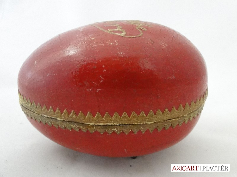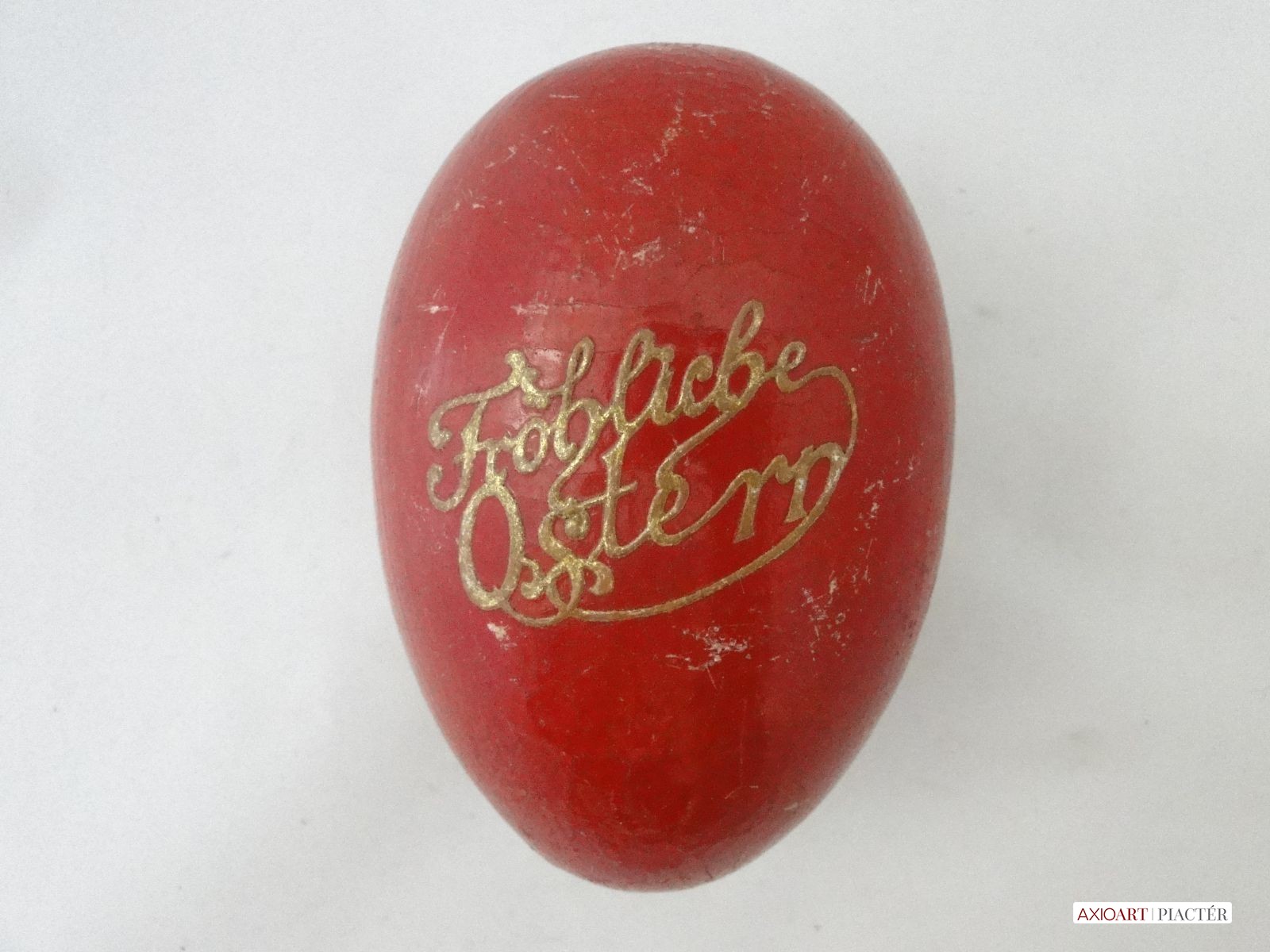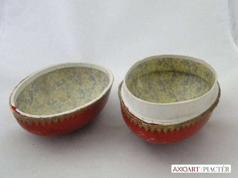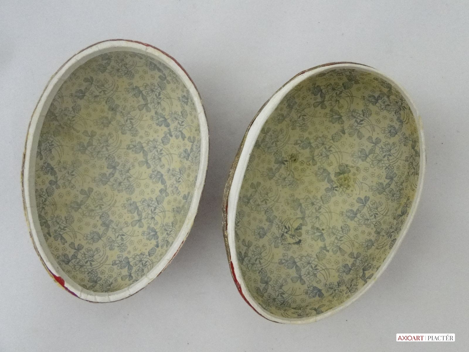 Régi német papírmasé feliratos tojás, csokitartó, drazsé tartó kisdoboz.