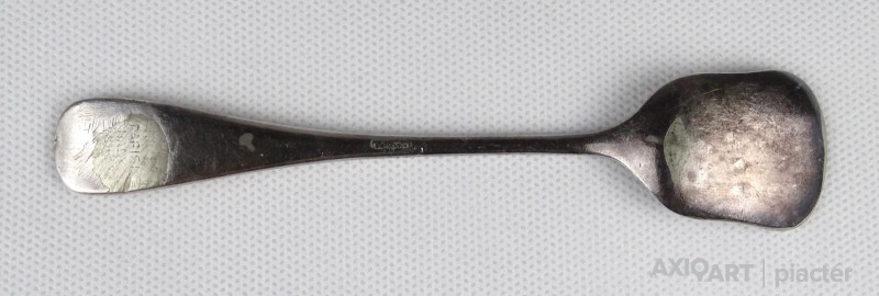 [1K486/X164] Régi ezüstözött kanál, fagyis kanál, kiskanál. Rajta jelzés, felirat: PARISI NAGY ÁRUHÁZ Szélesség: 2.7 cm Hosszúság: 13.8 cm Súly: 0.025 kg