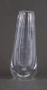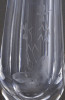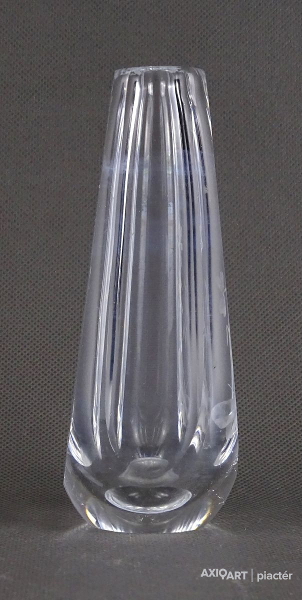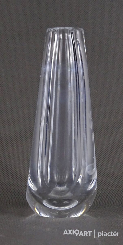 [1T614/Z022] Régi, csiszolt, finom rajzolatú pillangós mintával díszített, kisméretű fújtüveg váza, ibolya váza, díszváza. Alján szignált (lásd fotó). Magasság: 12.7 cm Szélesség: 5.4 cm Súly: 0.3 kg