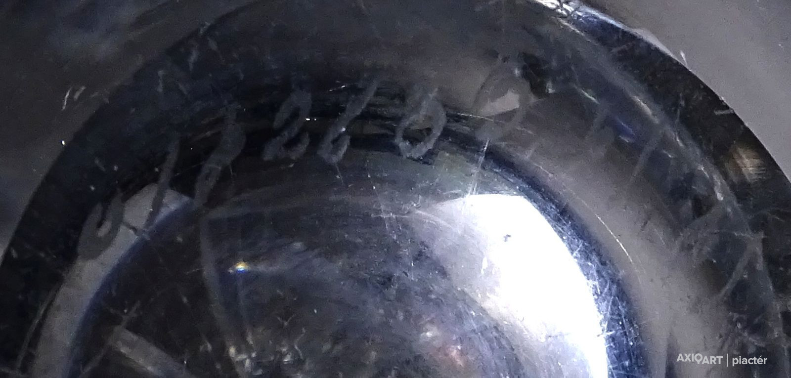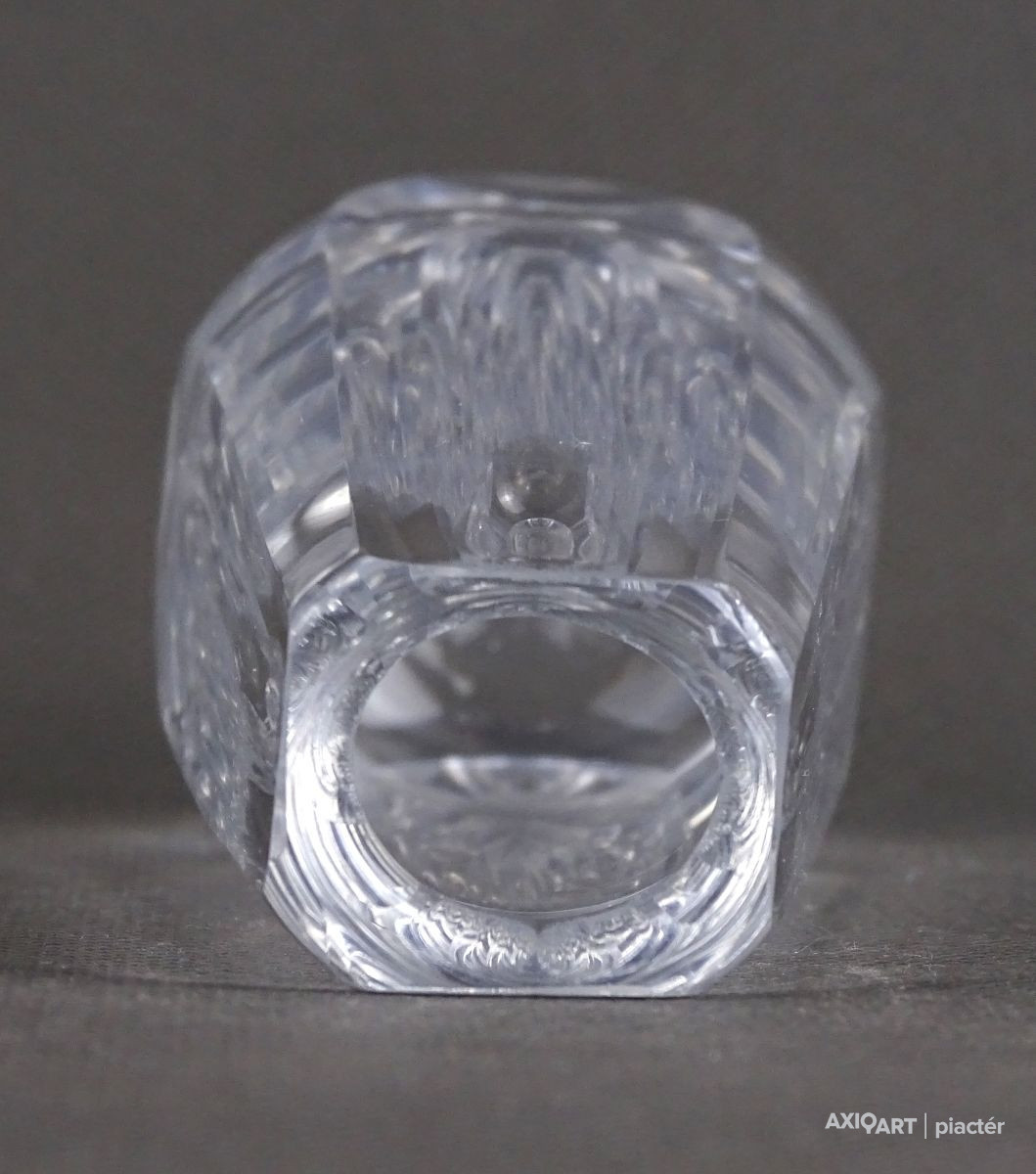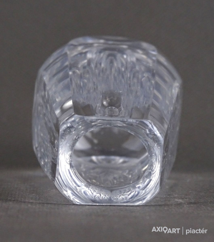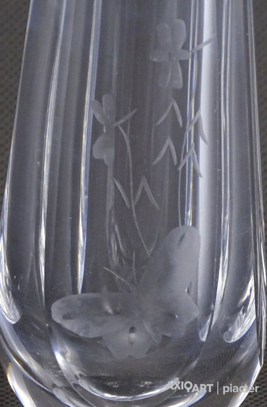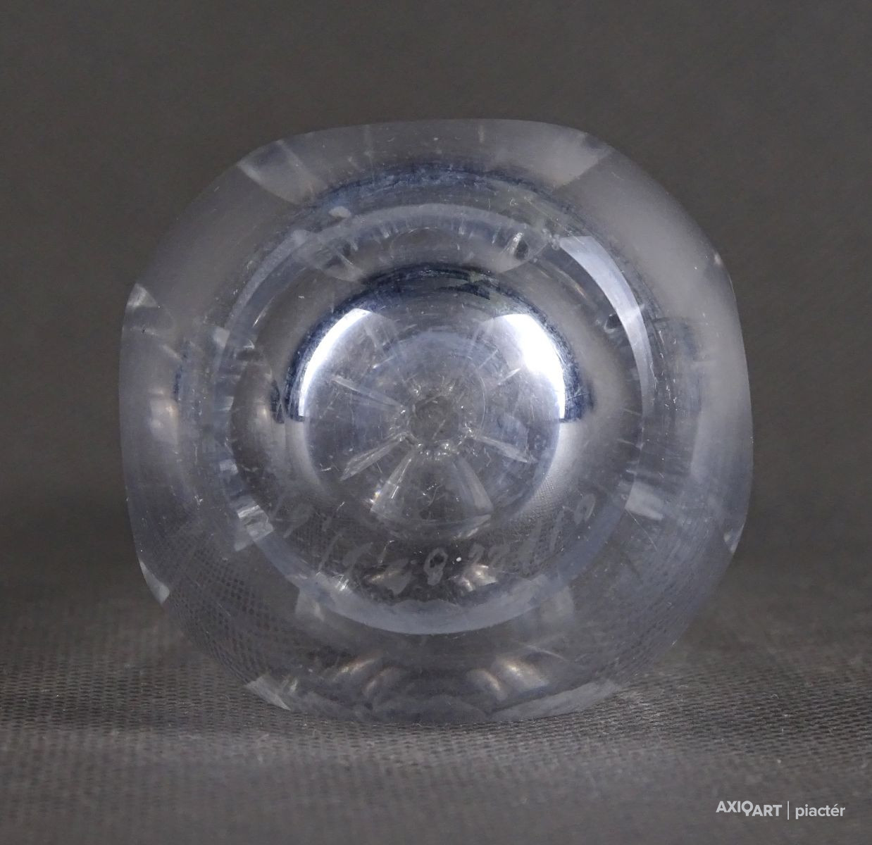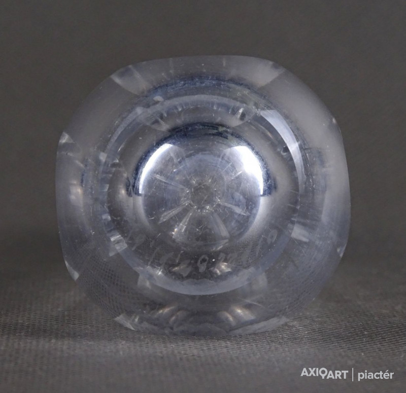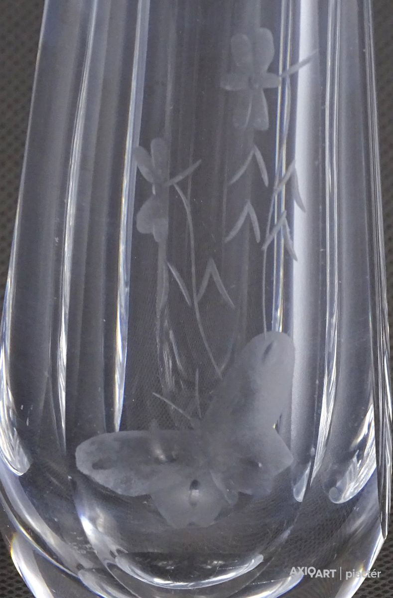 Régi pillangós csiszolt szignált üveg ibolyaváza 12.5 cm