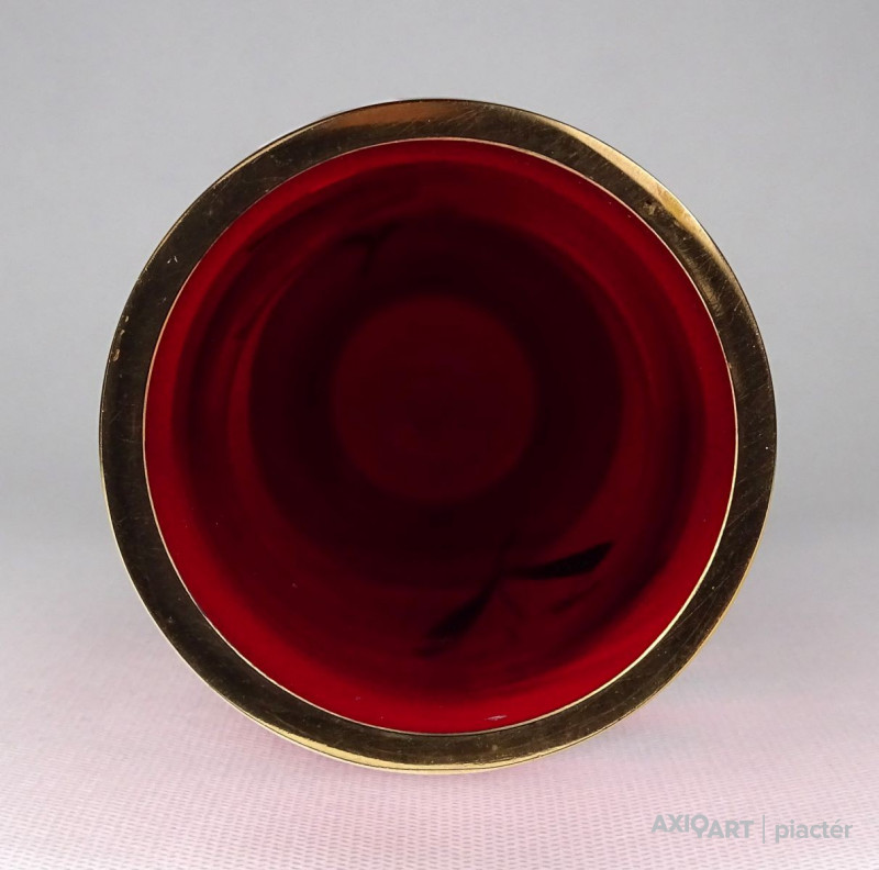 Régi piros kézzel festett aranyozott üveg váza 20 cm