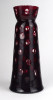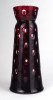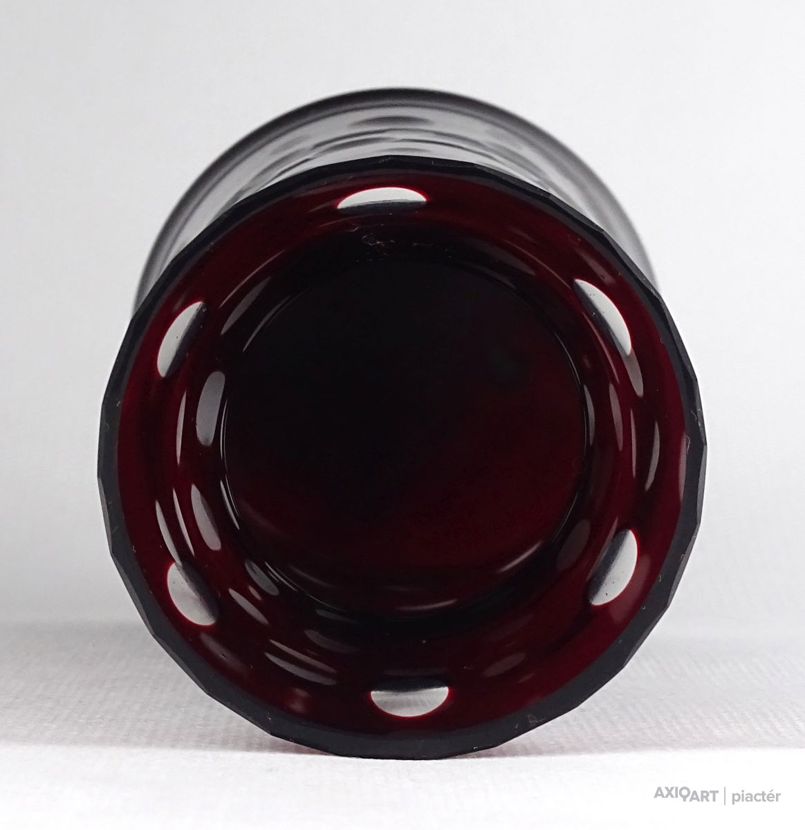[1R870/X146] Régi, hibátlan állapotú fújt rétegelt üveg váza. Piros színű, csiszolt pöttyös üveg váza, virágváza, díszváza. Magasság: 20 cm Szélesség: 8.7 cm Súly: 0.415 kg