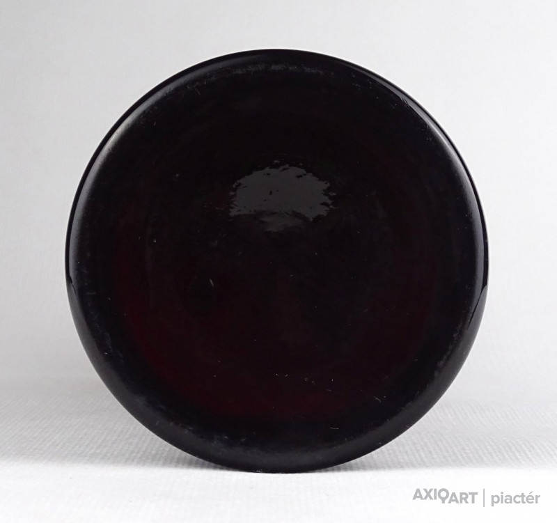[1O212/Z046] Hibátlan állapotú, színezett fúvott üveg váza, talpas üveg váza vagy üveg kupa. Skandináv design üveg. Talpán a fúvás szakítás nyoma szépen kivehető. Magasság: 14 cm Szélesség: 6.5 cm Súly: 0.215 kg Erik Höglund  Ugrás a navigációhozUgrás a kereséshez A papról (1902–1971) lásd Erik Höglund (pap) . Erik Höglund Született 1932. január 31. Karlskrona , Blekinge megye Halál 1998. január 27. (65 éves) Maria Magdalena plébánia , Stockholm Állampolgárság svéd Foglalkozás/megbízás Tervező, művész Ismert Tervezés Koszta Boda számára Feleség Maerit Levin (sz. 1953–1967; elvált) Ingrid Höglund (sz. 1974–1998; halála) Partner Monica Backström (partner 1968-1972) Rokonok Anna Höglund (lánya) Erika Höglund (lánya) Albin Höglund (fia)  Erik Sylvester Höglund , 1932. január 31-én született Karlskronában , 1998. január 27-én halt meg a stockholmi Maria Magdalena plébánián , svéd szobrász , festő , grafikus és üvegművész . Életrajz  Erik Höglund Torsten Höglund és Jenny Jonsson könyvelő fia, valamint Tore Enar Höglund szobrász és grafikus öccse volt . Tanulmányait a stockholmi Konstfackban végezte , először dekorfestészetet Fritz Sjöströmnek , majd szobrászatot Robert Nilssonnak , végül 1951–1952-ben Harald Sallbergnek grafikát . Erik Rosén , a Boda Üveggyár 1953 és 1973 között dolgozó tervezője fogadta be , és ez idő alatt jött el, hogy átalakítsa a svéd műüveggyártást az üvegtermékek kinézetére vonatkozó új ötletek bevezetésével. Ösztöndíja többek között metszetekkel kapcsolatban, a színek és a földes, aszimmetrikus dizájn sikeres lett a külpiacon. Bodán töltött ideje alatt fenyővel, vasalással és bútorokkal is foglalkozott. Később más üveggyárakkal is együttműködött, például a Pukeberggel , a Lindshammarral és a Studioglas Strömbergshyttannal . 1968-ban Monica Backström üvegművésszel megalapította a Backström & Höglund Design AB formatervező céget, amely bútorok, háztartási eszközök és használati tárgyak tervezésével foglalkozik. Höglund tagja volt a Vet Hut AB-nek is, amelyet 1971-ben alapított a Boda glasbruk tíz tervezője szokásos munkájuk mellett: Erik Höglund, Monica Backström, Ann Wolff , Göran Wärff , Bertil Vallien , Ulrica Hydman-Vallien , Per Arne. Lundahl, Liselotte Jörgensdotter, Gunhild Sinnemark és Rolf Sinnemark . Erik Höglund szobrászként számos köztéri dekorációt készített különféle anyagokból, köztük téglából és betonból. Ezt követően gyakran dolgozott együtt olyan építészekkel, mint Jon Höjer a Höjer & Ljungqvistnél , Bengt Gate és Lars Ågren .  Kiállítás  A stockholmi Palmcrantzska gyárban korábban Ulf G. Lindén állandó kiállítása volt Erik Höglund alkotásaival. Ezt a gyűjteményt 2009 szeptemberében a karlskronai Blekinge Múzeumnak adományozták.  Közművek válogatásban  Két állat és egy játék (1966), gránit, Bredängs Torg Stockholmban. Fiskargumman a karlskronai halpiacon. Négyzet alakú oszlop Gävle-ben Erik Höglund mintegy 150 köztéri dekorációt készített üvegből, bronzból, kovácsolásból, téglából, gránitból és betonból. Kerékpárosok I (1956), bronz, a trelleborgi oktatási intézmény Kerékpárosok II (1957), bronz, a karlskogai oktatási intézmény Kerékpárosok III (1957), bronz, stockholmi Hökarängens iskola Az élő szó (1958), festmény a nybrói városi könyvtárban Kerékpárosok IV (1958), bronz, Handverkstorget Sandvikenben Kerékpárosok V (1959), Sjöboskolan, Borås Falfestmény üvegablak (1962) a borgholmi templomban Kristallglasskogen (1964), üvegmozaik fal, Ellagårdsskolan Täby községben A tudás fája (1966), vasműves és üveg, Folkets Hus Nybroban Állatszobrok (1964-67), gránit, Hallsberg Két állat és egy játék (1966), gránit, Bredängs torg Stockholmban Tó szökőkúttal (1967), gránit, Trelleborg Ülő terhes nő (1971), bronz, Haganässkolan Älmhultban Hajó halászokkal (1972), vas, üveg és fa, Hotel Witt Kalmarban Négyzet alakú oszlop (1971-74), beton, Stortorget Gävle -ben A súlyemelő (1974), bronz, az östersundi sportcsarnok Gyűrűk a vízen (1976-77), bronz, Rödeby Torg , Karlskrona önkormányzat Az élet játéka , tégladomborműves fal és régi érmék , üveg, mindkettő 1979–1980, Sparbanken Linköpingben Úszók (1980), kovácsoltvas, úszócsarnok Rödebyben , Karlskrona önkormányzat Cirkuszgömb (1980-81), kovácsoltvas, Kristianstad megyei tanács Fiskargumman (1981-82), bronz, halpiac Karlskronában Az olvasócsalád (1983), bronz és üveg, Kalmár Városi Könyvtár Életmentő (1985), réz, úszócsarnok Haganässkolanban Älmhultban Dans bort i vägen (1985), bronz, Torsås volt Anya és gyermeke , bronz, Trelleborg A büszke apa és Két ember , bronz, Eskadern lakónegyed Linköpingben Játssz szobrot téglából, Lönneberga óvoda, Norra Fäladen Lundban  Forrás: wikipédia