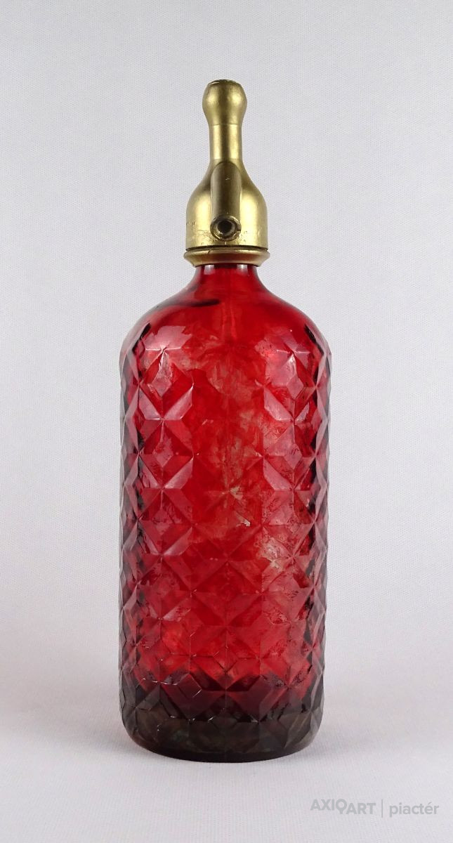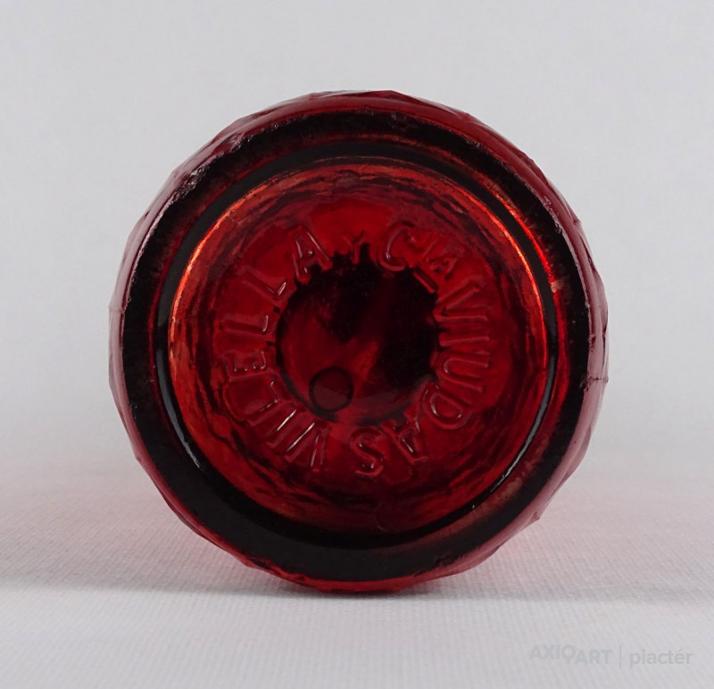 Régi piros Villela y Cia Viudas spanyol szódásüveg 29.5 cm