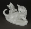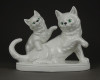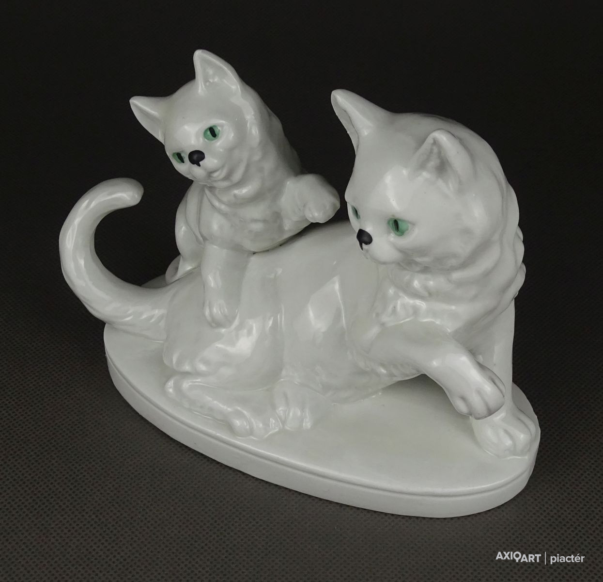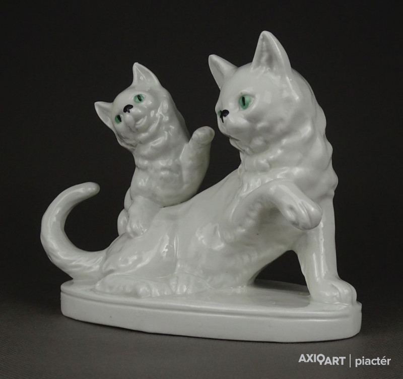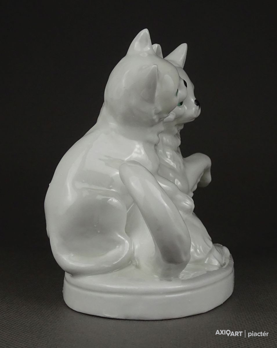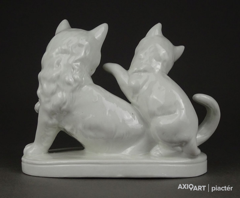 [1R955/X199] Szép állapotú talapzaton ülő cica, macska pár, páros. Anya és kölyke. Alján formaszám: 7337 Magasság: 12.5 cm Szélesség: 7.7 cm Hosszúság: 16 cm Súly: 0.17 kg