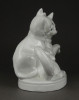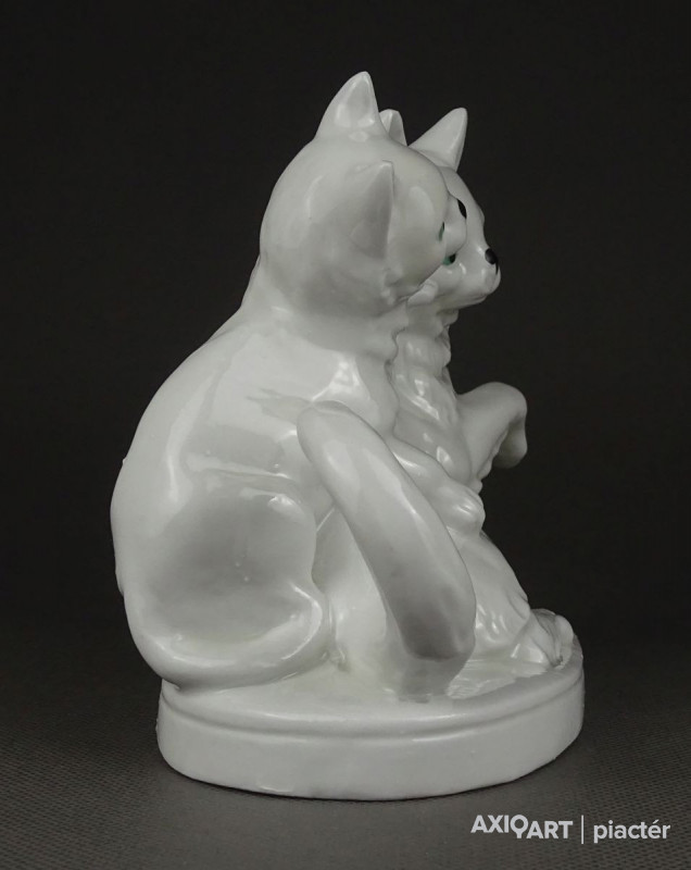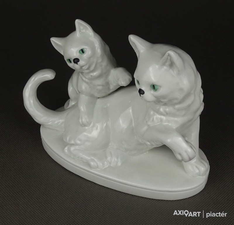 Szép állapotú talapzaton ülő cica, macska pár, páros. Anya és kölyke.
