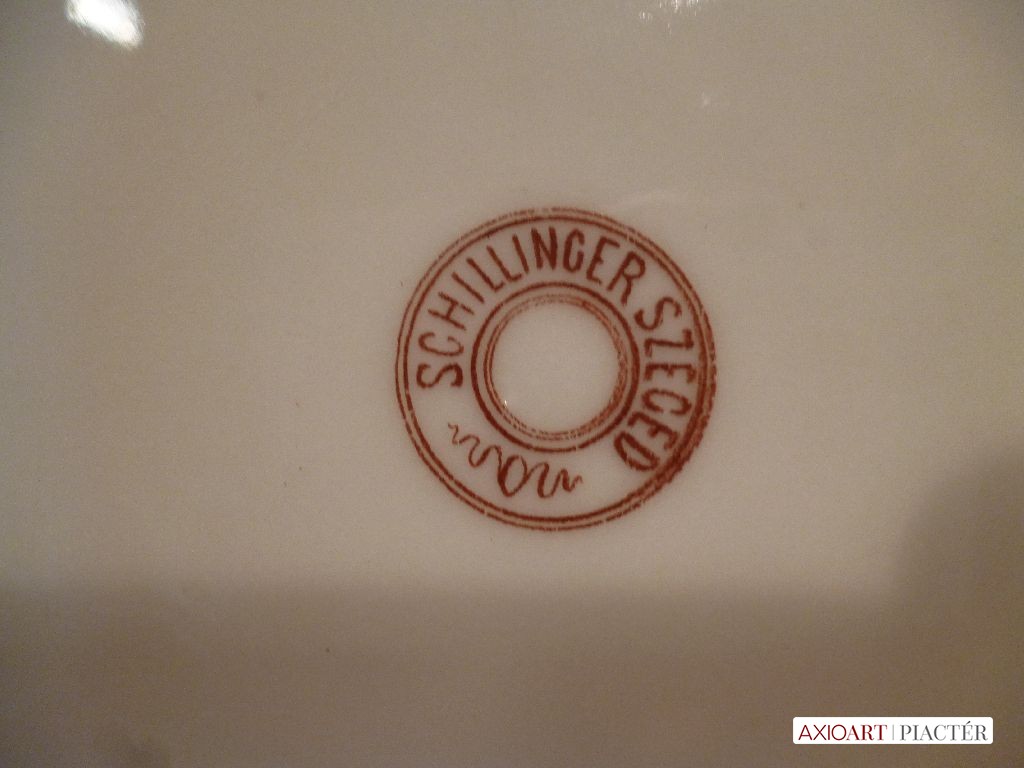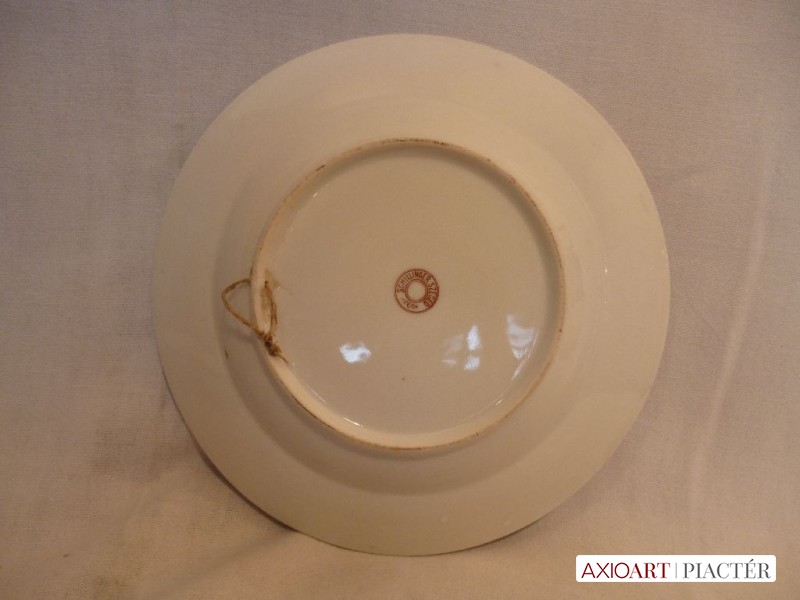 [Y894/X044] Jelzett hibátlan porcelán falra akasztható fali tál, hátul vörös körbélyegzővel jelzés SCHILLINGER SZEGED Ritka darab. Szélesség: 23 cm