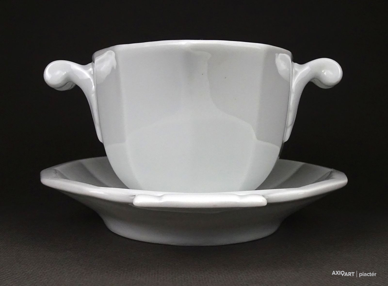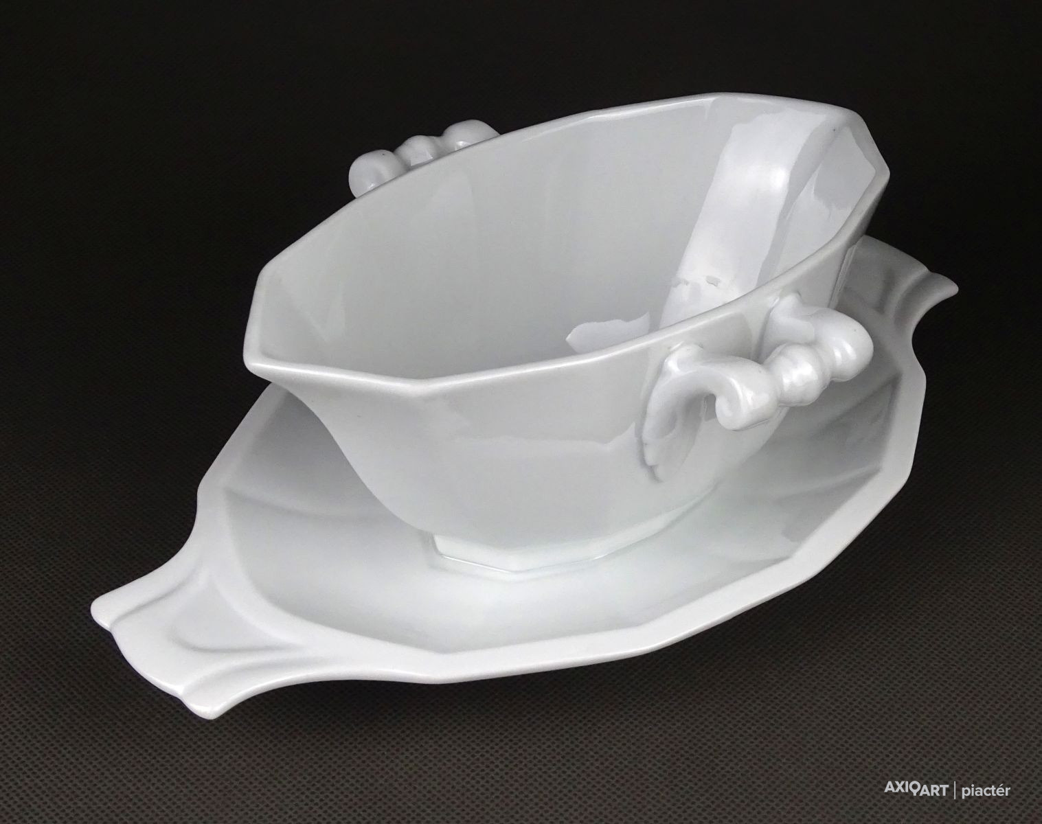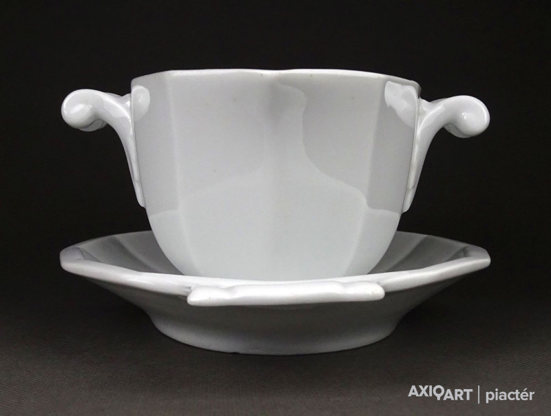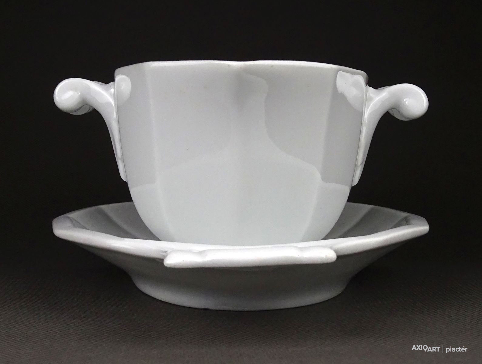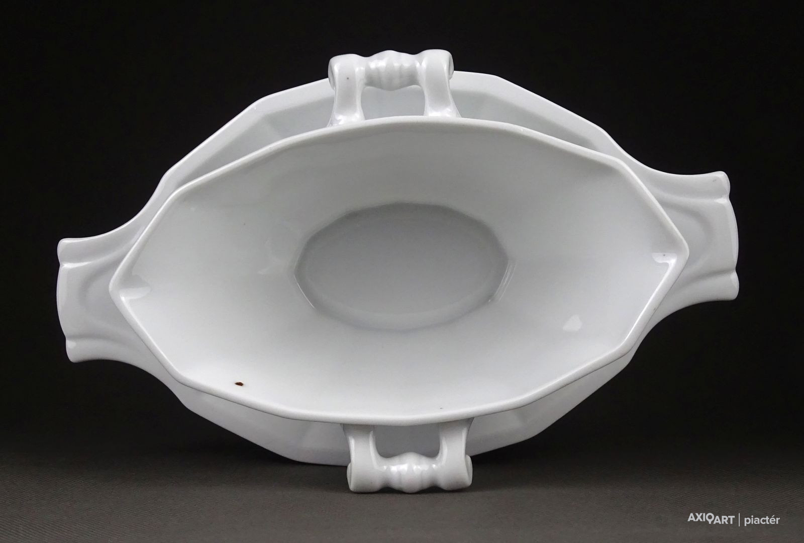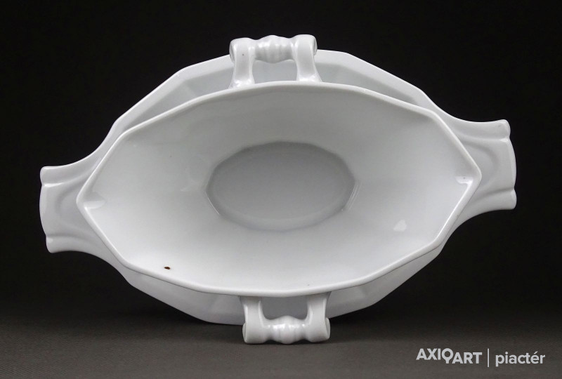 Régi, hibátlan hófehér porcelán mártásos, szószos kínáló tál, oldalán fülekkel.