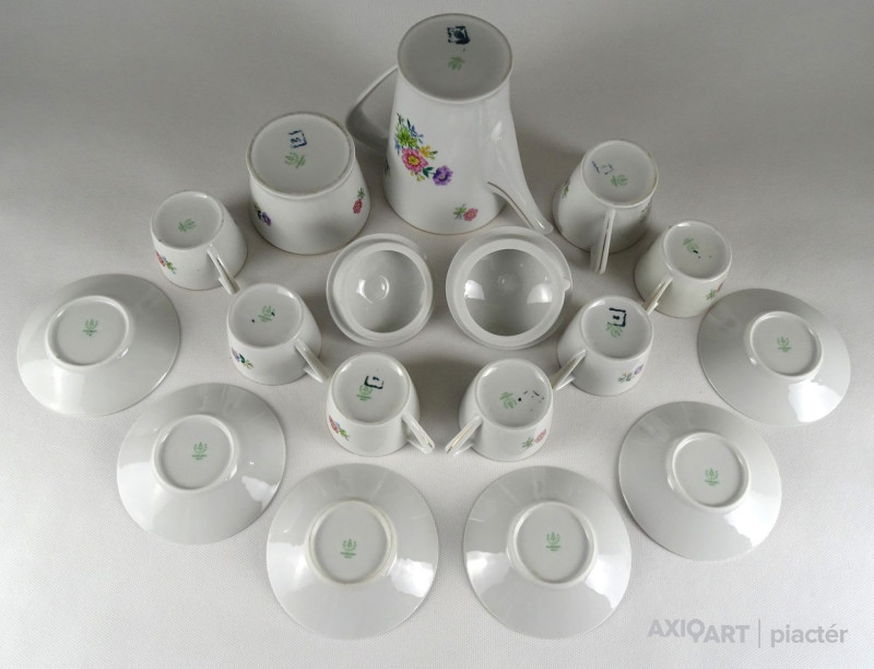 Régi, jelzett Hollóházi porcelán 6 személyes 15 darabos kávéskészlet.