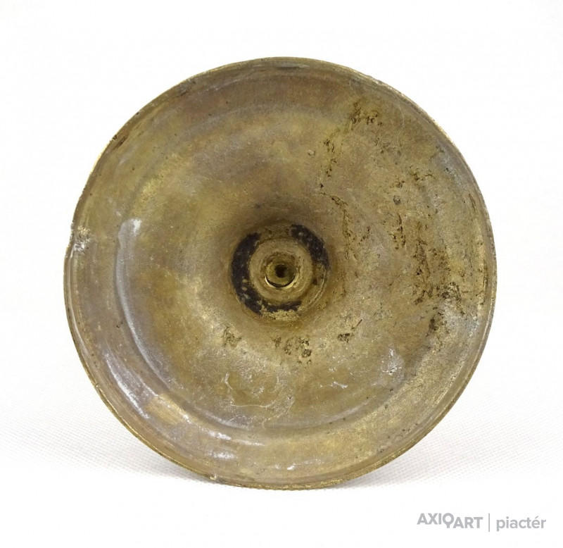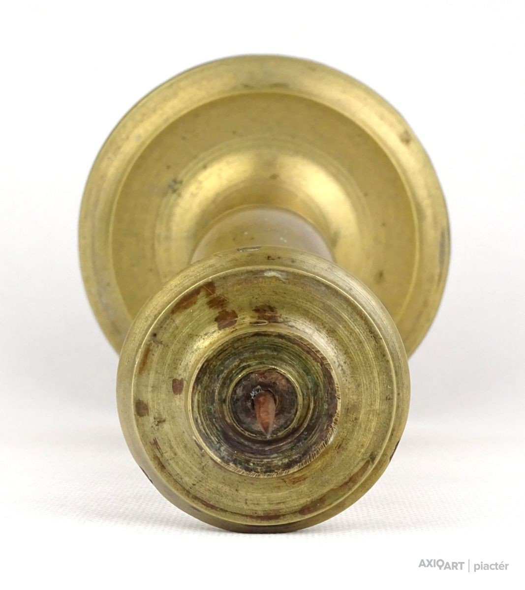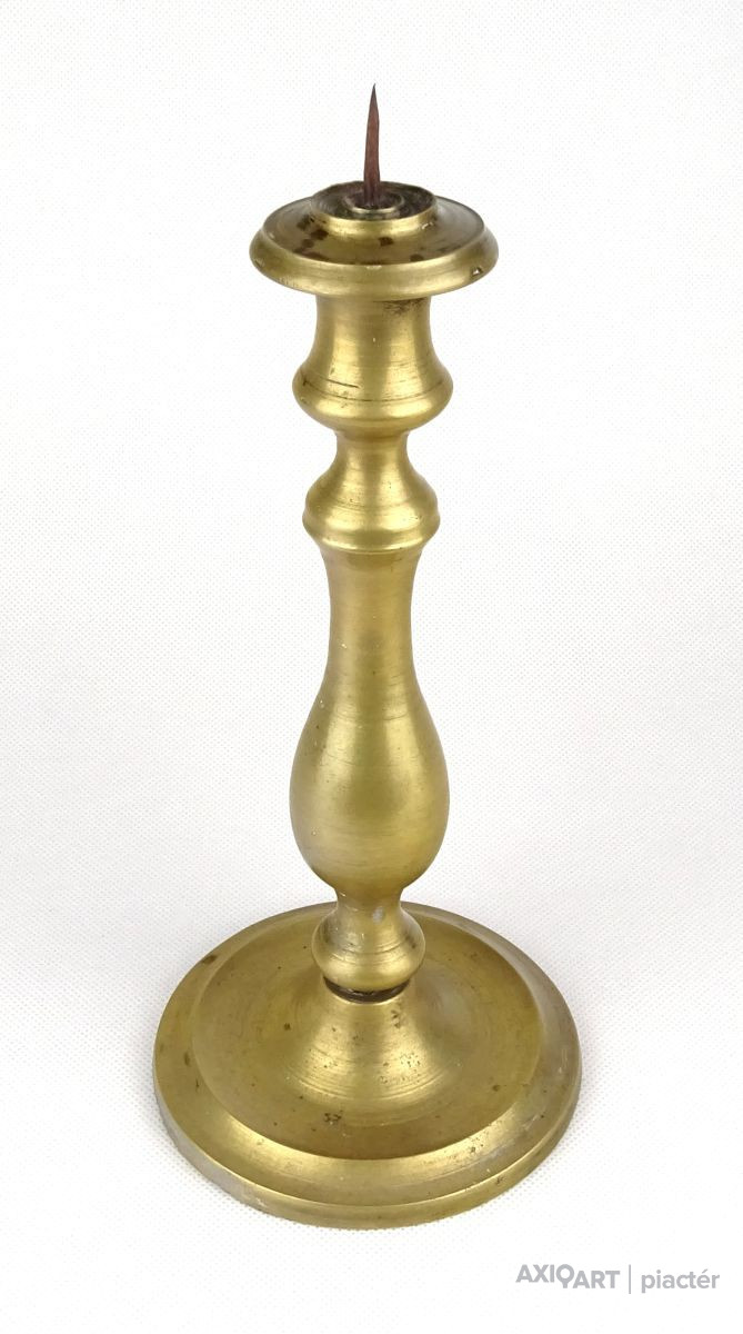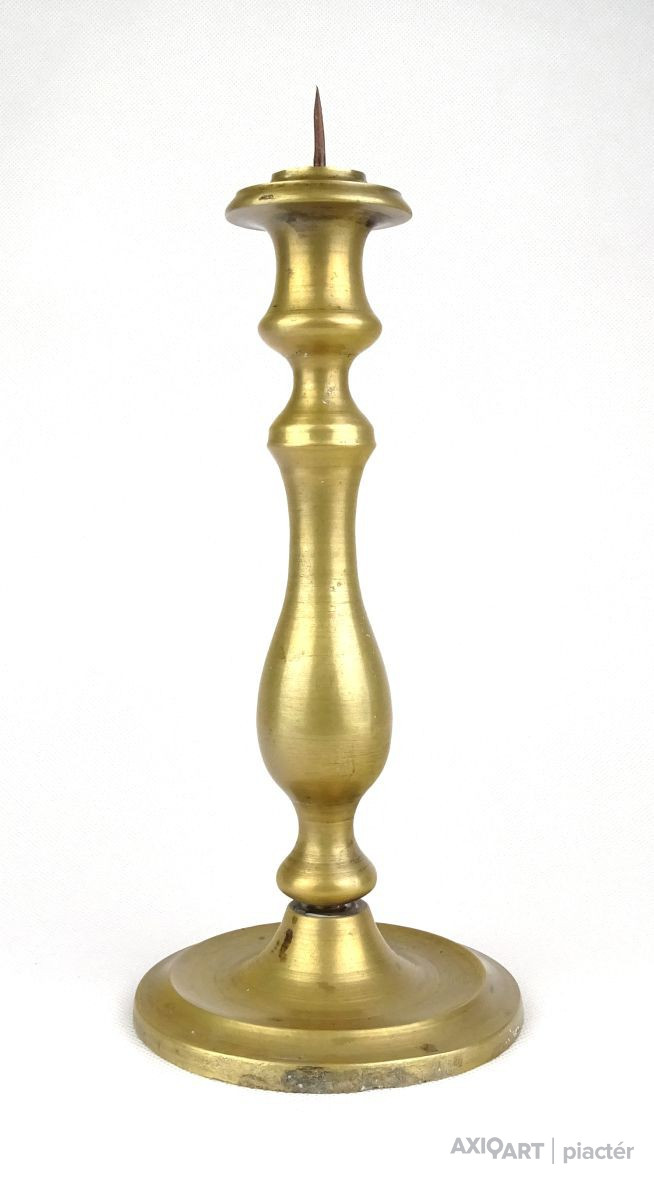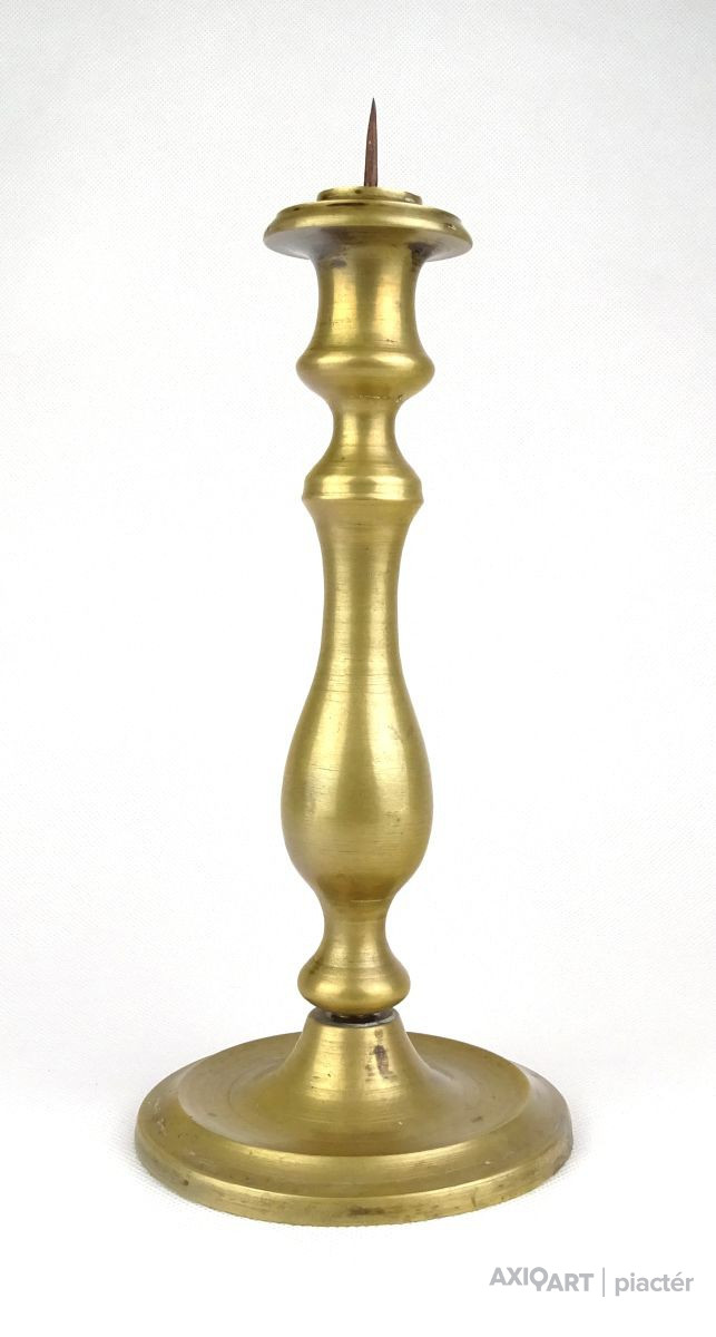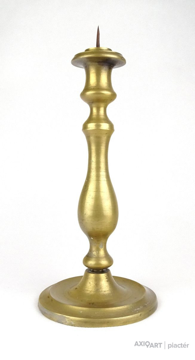 Régi réz gyertyatartó. A gyertyatartó tüskével rendelkezik, a gyertya rászúrható.