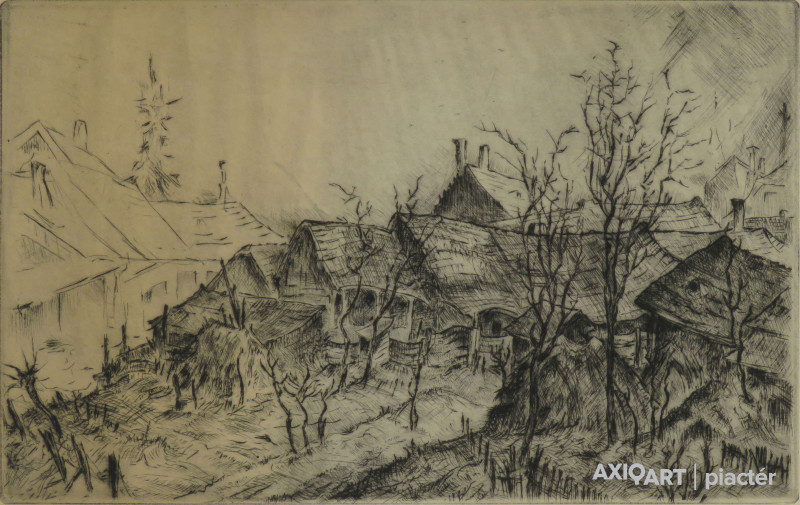 [FKD019/Bp58/38] A kép mérete: 22 x 34 cm keret nélkül. Készült: Rézkarc, Papír A kép Remsey Jenő György (Nagykőrös, 1885, Gödöllő, 1960) alkotása. Jelezve jobbra lent "Remsey (ceruzával)" A festmény jó állapotban van. Keret: Ép Magyar festők és grafikusok életrajzi lexikona I-II. Festő. 1905-1909 között Budapesten az Iparrajziskolában tanult, majd a gödöllői művésztelep tagja lett, ahol 1914-ig dolgozott. 1909-ben a KÉVE tagjai sorába választotta, s rendezésükben számos tárlaton vett részt. 1913-ban a nagybányai szabadiskolában képezte magát, majd a KÉVE tagjaként ösztöndíjjal Párizsba is elkerült, de tanulmányutakat tett Bécsbe és két ízben Münchenben is. 1924-ben egyik alapítója és elnöke volt a Spirituális Művészek Szövetségének, majd létrehozta annak lapját, a Fáklyát. 1937-41 között a Nemzeti Figyelő munkatársaként dolgozott, 1952-ben tagja lett a Szinyei Alkotóközösségnek, 1960-ban pedig a Rézkarcoló Művészek Alkotóközösségének. 1909-ben vett részt először a KÉVE tárlatán, 1920-ban újra. 1923-ban a Helikonban, 1924-ben és 1944-ben a Nemzeti Szalonban, 1935-ben és 1964-ben az Ernst Múzeumban, 1947-ben pedig a Szalmássy Galériában volt kiállítása. 1957-64 között több tárlatot is rendeztek műveiből Párizsban, de a KÉVE által alkotásai elkerültek berlini, düsseldorfi, bécsi, genfi, nürnbergi, lipcsei seregszemlékre is. Remsey hosszú pályájának kezdete a szecesszió stílusirányzatához kapcsolódott. Részt vett a szecesszió eszmeiségének elkötelezett gödöllői művésztelep munkájában, s egészen haláláig Gödöllőn élt. Így nem csoda, ha mindvégig ápolta a művésztelep emlékét, mely saját pályáján is az első döntő jelentőségű inspirációt és művészetközösséget jelentette. Akárcsak Körösfői és Nagy Sándor, ő is szimbolikus sugallatú műveket alkotott, amelyekre a lapidáris formaalkotás, a stilizáció, a vonalkontúrok hangsúlyos szerepe, a homogén színsíkok alkalmazása volt jellemző. Gobelintervezéssel is foglalkozott. Díjak: Benczúr-díj; Hors Conours-oklevél, Bécs; Gödöllő város díszpolgára. Több műve a Magyar Nemzeti Galéria tulajdonát gazdagítja (Énekeskoldusok, Ködfoszlás a Dunán, Az irgalmas szamaritánius, Szent család, Önarckép). A budapesti Lónyai utcai református gimnázium számára 1942-ben egy freskót alkotott (A magyar reformáció szellemtörténete). (Éber, RI-NM, MMFRA, ML) Magyar festők és grafikusok életrajzi lexikona I-II. Műgyűjtők és kereskedők kézikönyve Festő. Budapesten tanult, majd a gödöllői művésztelep tagja volt. 1909-ben koll. kiállítása volt a KÉVE tárlat keretében. 1913-ban a nagybányai festőiskolában dolgozott. A KÉVE tagjaként ösztöndíjjal Párizsba is elkerült, de tanulmányutakat tett Bécsben, és Münchenben is. 1920-ban ismételten állított ki műveket a KÉVE tárlatán. 1923-ban a Helikonban, 1924-ben a Nemzeti Szalonban volt kiállítása. A Spirituális Művészek Szövetségének tagja volt. Alkotásait stilizálja s főleg dekoratív hatásokra törekszik. Több műve az MNG tulajdonában van. (Éber, RI-NM) Magyar festők és grafikusok adattára Művészi képzettségét az a kapcsolat segítette kibontakozni, amelyet Gulácsy Lajossal, Erdei Viktorral és Fülep Lajossal teremtett. A KÉVE tagja lett és ösztöndíjjal Párizsba került. Tanulmányutakat tett Bécsben és Münchenben, majd itthon a Gödöllői Művésztelepre került. Alapító tagja volt az 1924-ben alakult Spirituális Művészek Szövetségének. 1924-ben és 1944-ben a Nemzeti Szalonban, 1935-ben és 1964-ben az Ernst Múzeumban és 1947-ben a Szalmássy Galériában vett részt csoportos kiállításokon. Eleme a kompozíció, a sokalakos, a nagy csoportokat fölölelő képek problémája, amely képszerkesztő hajlandóságát, rendező képességét foglalkoztatja és alkalmat ad arra, hogy témáit a maga sajátos módján adja elő. Ez pedig a díszítő stilizálás nyelve. Képei síkszerűek, nagy dekoratív színfoltok mozaikszerű együttesei, amelyek erőteljes kontúrhatásukkal és fényproblémáikkal gobelin terveknek vagy üvegfestményeknek hatnak. Írói munkássága is számottevő. - Irod.: Gellér Katalin - Keserű Katalin: A gödöllői kismesterek. MTA 1981. I. 441. Művészeti lexikon I-IV. Festő, költő és író. Bp.-en, Bécsben és Münchenben tanult, majd a gödöllői művésztelep tagja lett. Számos külföldi kiállításán kívül 1909-ben és 1920-ban kollektív kiállítása nyílt a KÉVE-tárlat keretében, 1923-ban a Helikon szalonjában, 1924-ben és 1944-ben a Nemzeti Szalonban, 1935-ben és 1964-ben az Ernst Múzeumban, 1947-ben a Szalmássy Galériában. 1957 és 1964 között Párizsban több kiállítást rendeztek műveiből. 1924-ben egyik alapítója s elnöke volt a Spirituális Művészek Szövetségének. Több műve (Énekeskoldusok, Ködfoszlás a Dunán, Az irgalmas szamaritánius, Szent Család, Önarckép stb.) a Nemz. Gal. tulajdona. Szecessziósan stilizált, szimbolikus ihletésű képeivel expresszív hatásokra törekedett. Művészeti lexikon I-II. Budapesten tanult, azután a gödöllői művésztelep tagja volt. 1909. és 1920. kollektív kiállítása volt a Kéve tárlat keretében. 1923. a Helikon szalónjában, 1924. a Nemzeti Szalónban. A Spirituális Művészek Szövetségének tagja. Énekes koldusok c. olajfestménye a Székesfővárosi Múzeum, Anyám arcképe, Ködfoszlás a Dunán, Az irgalmas szamaritánius, a Szent Család és Önarckép c. művei a Szépművészeti Múzeum tulajdonában vannak. Képeit stilizálja s főleg dekoratív hatásokra törekszik. Művész életrajzok kortárs magyar képzőművészek Művészeti tanulmányait Bécsben, Münchenben és a gödöllői művésztelepen végezte. 1907 óta szerepel a hazai és külföldi nyilvá