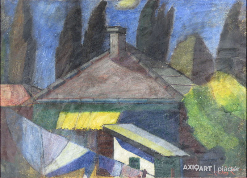 [FKD027/Bp4/60] A kép mérete: 60 x 82 cm keret nélkül. Készült: Olaj, pasztell, Papír (kasírozva) A kép Szabó Zoltán Angyalföldi (Budapest, 1929) alkotása. Jelezve jobbra lent "Szabó Z 73" A festmény jó állapotban van. Keret: Ép Magyar festők és grafikusok életrajzi lexikona I-II. Festő. Rajkai György beszélte rá, hogy jelentkezzék felvételre a Képzőművészeti Főiskolára. 1948-49-ben a Dési Huber-szakkörben rajzolt, festett Gráber Margit vezetésével. 1950-ben jelentkezett a Képzőművészeti Főiskolára, ahol 1951-ben kezdte meg tanulmányait Fónyi Géza, Barcsay Jenő és Domanovszky Endre keze alatt. 1953-54-ben a főiskola megvált tőle, lekerült Tatabányára, ahol a művésznövendékek számára művésztelepet létesítettek. Számos műve kapcsolódik a tatabányai periódushoz, amelynek élményéből még évek múlva is bőven merít. 1955-ben visszakerült a főiskolára, ahol 1958-ban fejezete be tanulmányait. Ezt követően két évig - a Fiatal Művészek Stúdiójának tagjaként - a stúdió műtermében dolgozott. 1960-63 között Derkovits-ösztöndíjban részesült. Kiállító művészként első ízben 1958-ban a VII. Magyar Képzőművészeti Tárlaton szerepelt jelentősebb anyaggal. Ettől kezdve minden nemzeti tárlaton, a Fiatal Képzőművészek Stúdiójának bemutatóin, jelentősebb hazai és külföldön rendezett magyar seregszemléken részt vett alkotásaival (Ernst Múzeum, Műcsarnok, Tiszti Klub Budapest, Veszprém, Szolnok, Tatabánya, Vác, Győr, Kecskemét, Tallin, Berlin, Varsó, Belgrád, Párizs, Moszkva, stb.). Erőteljes formákkal komponált figurális kompozíciókat, portrékat, városképeket, csendéleteket alkotott olajban, pasztellben, szénnel és temperával. A Nyolcak, Nemes Lampért József és a korai Uitz Béla alkotások formai örökségének legrangosabb mai folytatója. A külföldiek közül Siqueiros és D. Rivera gyakoroltak rá nagy hatást, akik leginkább lehetnek expresszív stílusának mintaképei. Szabó végtelen humanizmusa, őszinte hite az alkotásban, a tiszta emberi kapcsolatokban és a szeretetben, az emberi lét himnuszává fokozódik vásznain. Monumentális, óriási lendület jellemzi alakjait, akár táblaképről, szénrajzról, akár monumentális munkáról van szó. Díjak: a Stúdió pályázatának I. díja; Munkácsy-díj; a Szolnoki Festészeti Triennále II. díja; Érdemes Művész. Sok murális alkotást is készített (Sátoraljaújhely, Csongrád, Baja, Bácsalmás, stb.). Alkotásai helyet kaptak a Magyar Nemzeti Galériában, a Legújabbkori Történeti Múzeumban és több vidéki képtárban. (Egri Mária: Szabó Zoltán, MÉ, H.J.: Műv. 1970/8, Műv. 1976/5, A.J.: Műv. 1985/2) Magyar festők és grafikusok életrajzi lexikona I-II. Műgyűjtők és kereskedők kézikönyve Festő. Művészeti tanulmányait a Dési Huber István szakkörben kezdte, ahol Gráber Margit korrigálta. 1950-ben jelentkezett Budapesten, a Képzőművészeti Főiskolára. Fónyi Géza, Barcsay Jenő és Domanovszky Endre voltak a mesterei. Siqueiros és Diego Rivera is nagy hatást gyakoroltak rá, akik leginkább lehetnek expresszív stílusának mintaképei. 1958 óta szerepel hazai és külhoni tárlatokon (Műcsarnok, Ernst Múzeum, stb.). 1960-63 k. Derkovits-ösztöndíjas volt. 1969-ben Munkácsy-díjjal tüntették ki. 1977-ben érdemes művész címet kapott. Végtelen humanizmusa, őszinte hite a munkában, a tiszta emberi kapcsolatokban, a szeretetben, az emberi lét himnuszává fokozódik vásznain. Monumentális, hatalmas lendület jellemzi figuráit, akár táblaképről, szénrajzról akár monumentális műről van szó. Sok murális munkát is készített (Sátoraljaújhely, Csongrád, Baja, Bácsalmás, stb.). A NYOLCAK, Nemes Lampért és a korai Uitz munkák formai örökösének legrangosabb mai folytatója. (MÉ, H.J.: Műv.-1970/8, Műv.-1976/5, A.J.: Műv.-1985/2) Magyar festők és grafikusok adattára Művészeti tanulmányait a Dési Huber szakkörben kezdte, majd 1951-1958-ban Fónyi Géza, Barcsay Jenő és Domanovszky Endre növendéke a főiskolán. 1958-tól minden fontosabb hazai és számos külföldi tárlaton részt vett. Kiállított többek között a Szovjetunióban, Bulgáriában, Jugoszláviában, az NDK-ban, Lengyelországban és Franciaországban. Több vidéki bemutató (Dunaújváros, Szeged, Kecskemét, Szolnok, Győr stb.) mellett 1970-ben az Ernst Múzeumban, 1976-ban a Műcsarnokban jelentkezett gyűjteményes anyaggal. 1976-ban önálló kiállítása volt Tallinban. 1978-ban az Ernst Múzeumban. A Kilencek alapító tagja, és valamennyi kiállításuk résztvevője. 1960-1963-ban a Derkovits-ösztöndíjat, 1969-ben Munkácsy-díjat, 1977-ben érdemes művészi címet kapott. - Művészetében központi helyet foglal el az ember. Végtelen humanizmus, őszinte hite a munkában, a tiszta emberi kapcsolatokban, a szeretetben az emberi lét himnuszává fokozódik vásznain. A Nyolcak formai örökségének legrangosabb mai folytatója. - Irod.: P.Sz.T.: Művész életrajzok. Bp. 1985.; Acsay Judit: Legszívesebben az eget festeném be. Beszélgetés Szabó Zoltánnal. Művészet, 1985. 2. Művészeti lexikon I-IV. Festő. 1951-58 között a Képzőművészeti Főiskolán Fónyi Géza, Barcsay Jenő és Domanovszky Endre tanítványa volt. 1958-tól állítja ki erőteljes formákkal komponált figurális kompozícióit (Almahámozók, Kesztyűs női portré stb.). 1965-ben sgraffitót készített egy sátoraljaújhelyi lakóházra. Művész életrajzok kortárs magyar képzőművészek 1958-ban kapott diplomát Fónyi Géza, Barcsay Jenő és Domanovszky Endre tanítványaként. Azóta minden fontosabb hazai rendezvény résztvevője, gyakorta kiállít külföldön is. Számos vidéki bemutató mellett 1970-ben az Ernst Múzeumban, 1976-ban a Műcsarnokban, 1983-ban a Tihanyi Múzeumban jelentkezett gyűjteménye