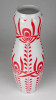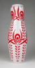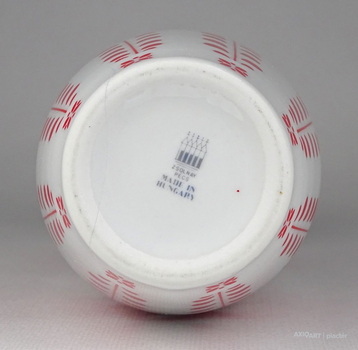 Szép állapotú Zsolnay porcelán váza, piros virágmotívumos díszítéssel. A vázán hajszálrepedés található, lásd fotó. A váza ereszti a vizet.