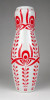 [1L455/X058] Szép állapotú Zsolnay porcelán váza, piros virágmotívumos díszítéssel. A vázán hajszálrepedés található, lásd fotó. A váza ereszti a vizet. Alján jelzés: ZSOLNAY PÉCS MADE IN HUNGARY Magasság: 24.5 cm Szélesség: 8 cm Súly: 0.48 kg