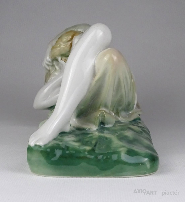 Régi ritka Zsolnay porcelán fekvő akt szobor 22 cm